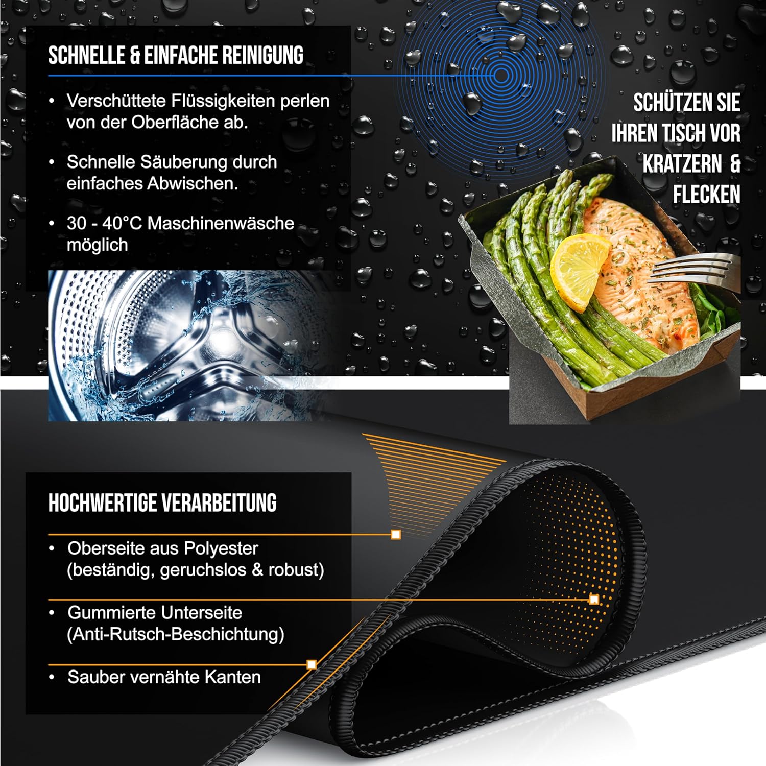 • Високо качество: нашата покривка за маса с дебелина 4 мм е изработена от висококачествени материали без мирис: горната част е от полиестер, долната е от гума. Приятно меката подложка осигурява комфорт при работа, а гумираната основа предотвратява подхлъзване. Внимателно зашити ръбове осигуряват дълготрайно удоволствие от продукта.