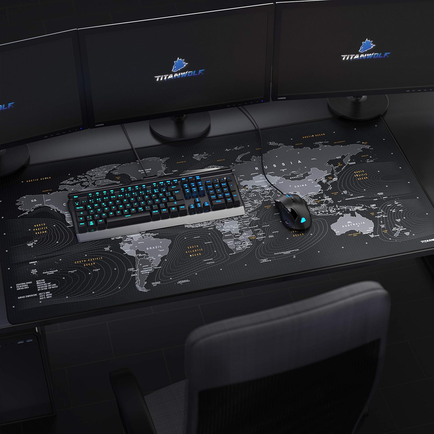 • За големи площи: тази подложка за маса Titanwolf покрива 1,2 квадратни метра. Перфектната защита за повърхността на вашата маса и идеалната основа за игри. Лесно побира всички предмети и канцеларски материали. Впечатляващото голямо пространство е идеално и за геймъри с ниски DPI настройки. | 304903