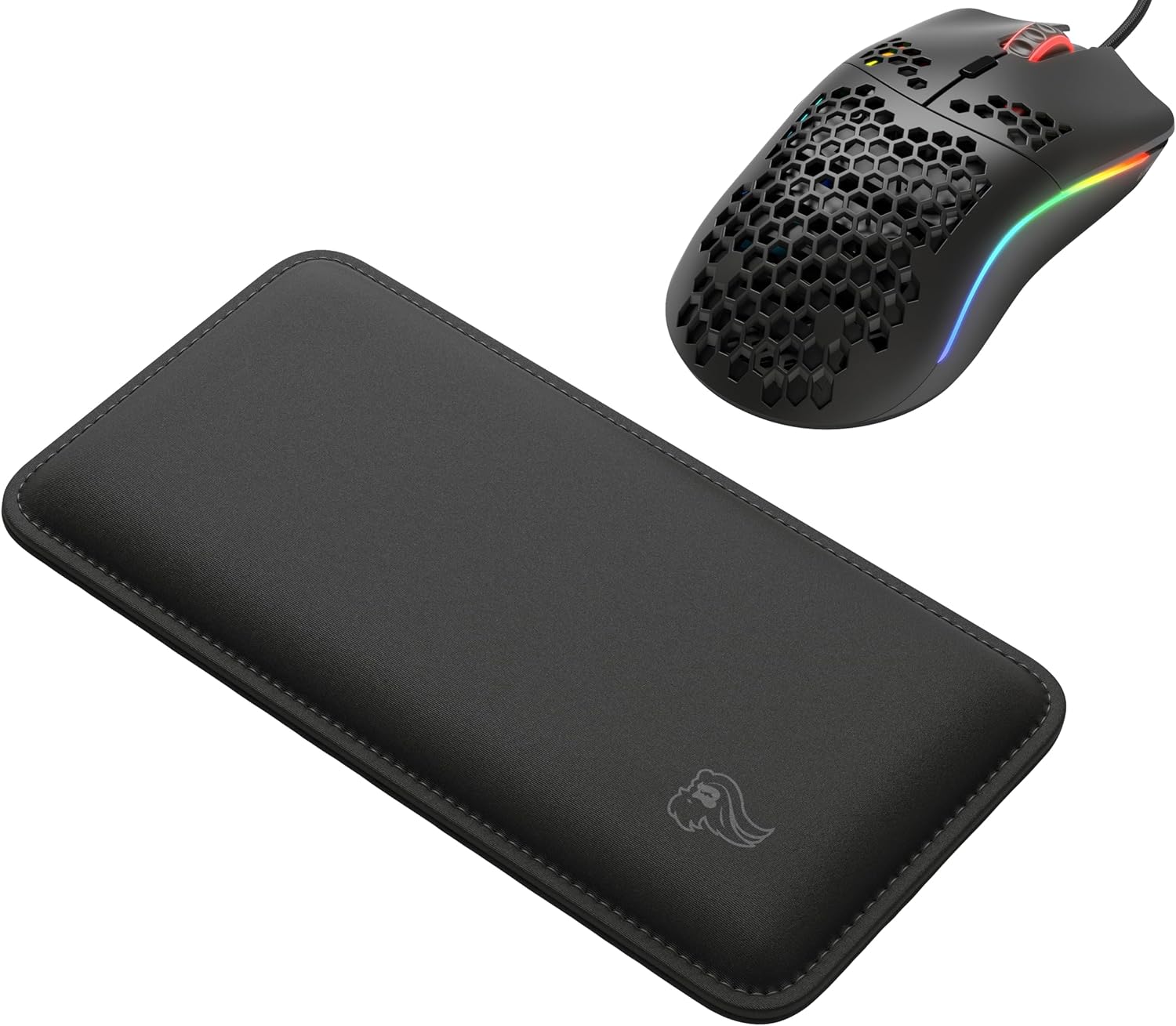 Подплатена поставка за китка на мишка Glorious Gaming - ватирани ръбове, гладка текстилна повърхност, неплъзгаща се гумена основа, средна твърдост, 200 x 100 x 17 мм - Black-Stealth