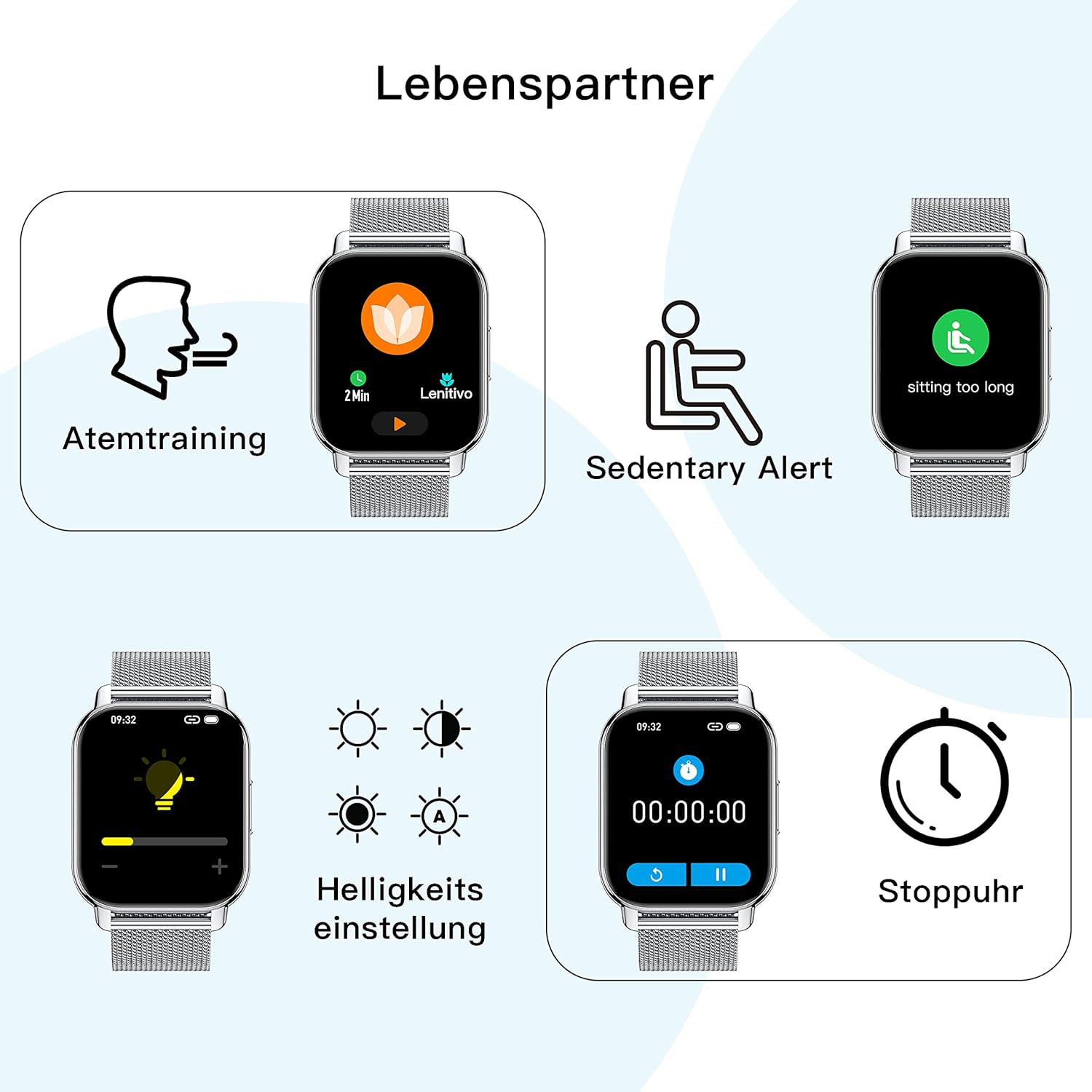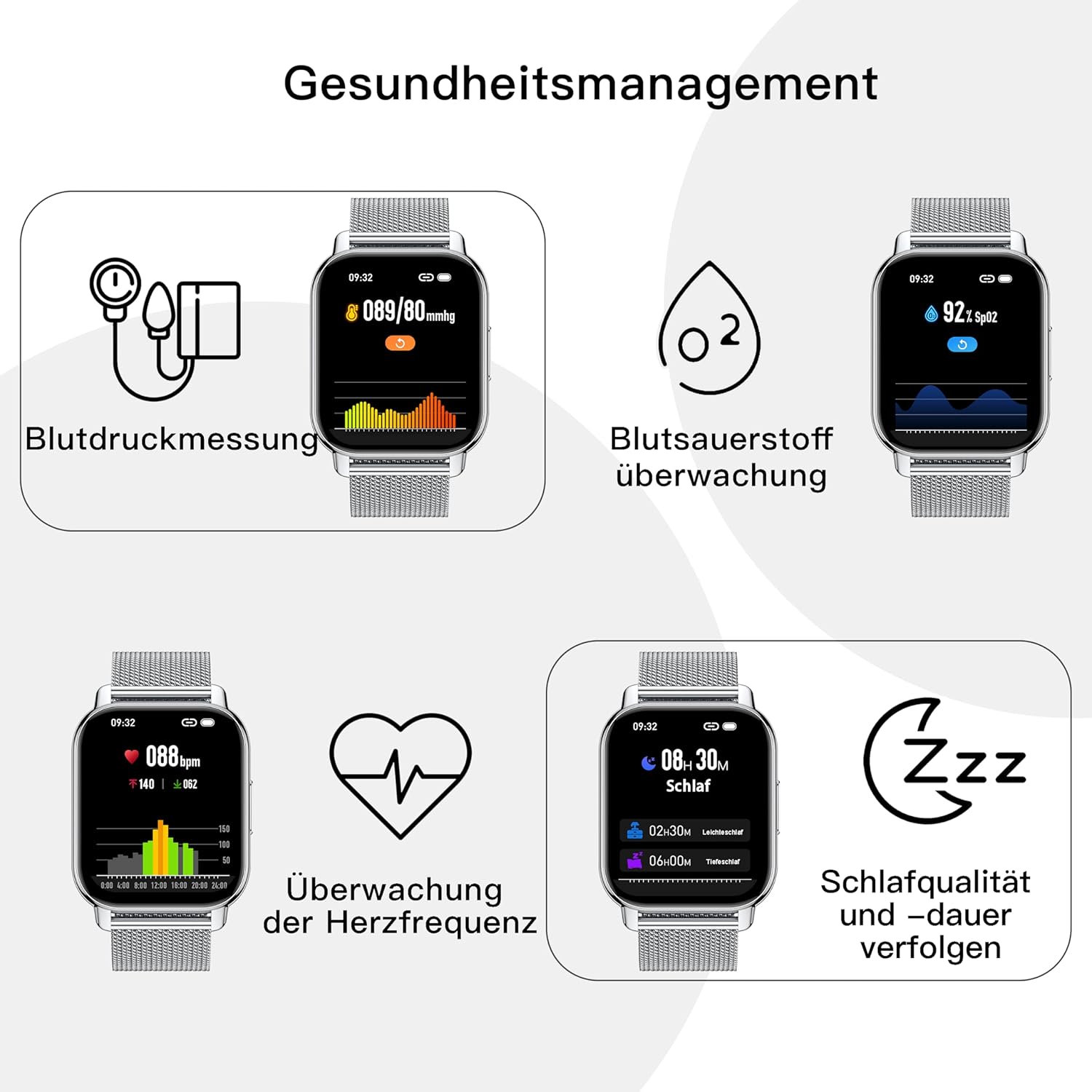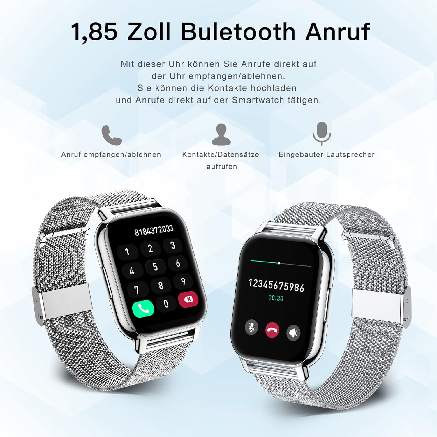 Popglory смарт часовник 1.85 инчов HD сензорен цветен дисплей с персонализиран екран, 240 x 286 HD резолюция, можете да изберете всяко изображение, което искате да зададете като фонова картина
