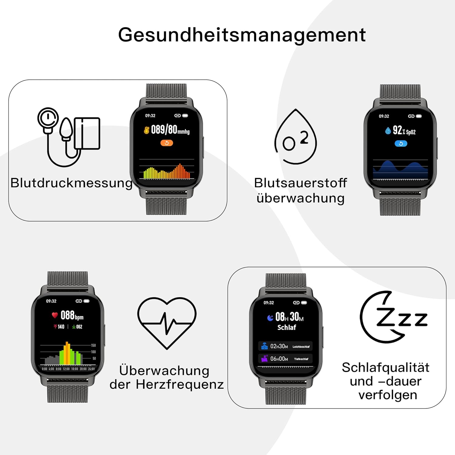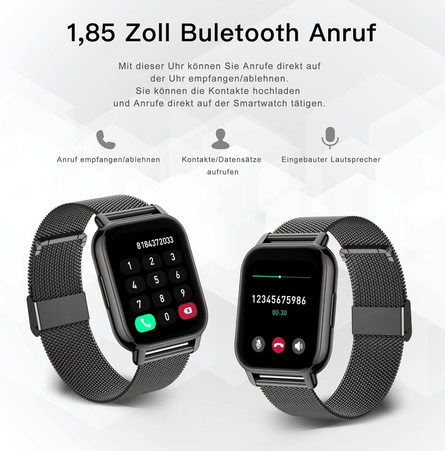 Popglory смарт часовник 1.85 инчов HD сензорен цветен дисплей с персонализиран екран, 240 x 286 HD резолюция, можете да изберете всяко изображение, което искате да зададете като фонова картина