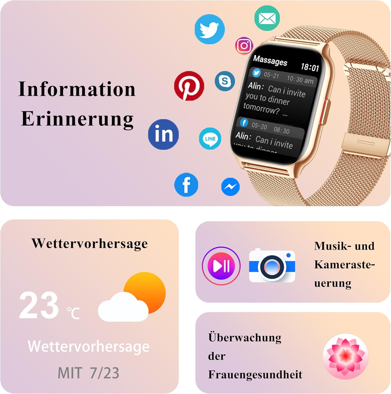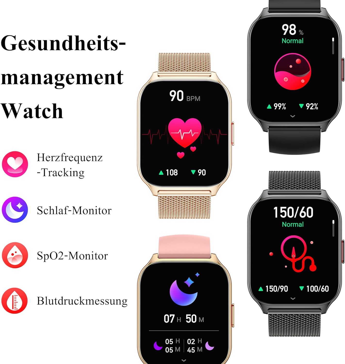 Popglory смарт часовник 1.85 инчов HD сензорен цветен дисплей с персонализиран екран, 240 x 286 HD резолюция, можете да изберете всяко изображение, което искате да зададете като фонова картина