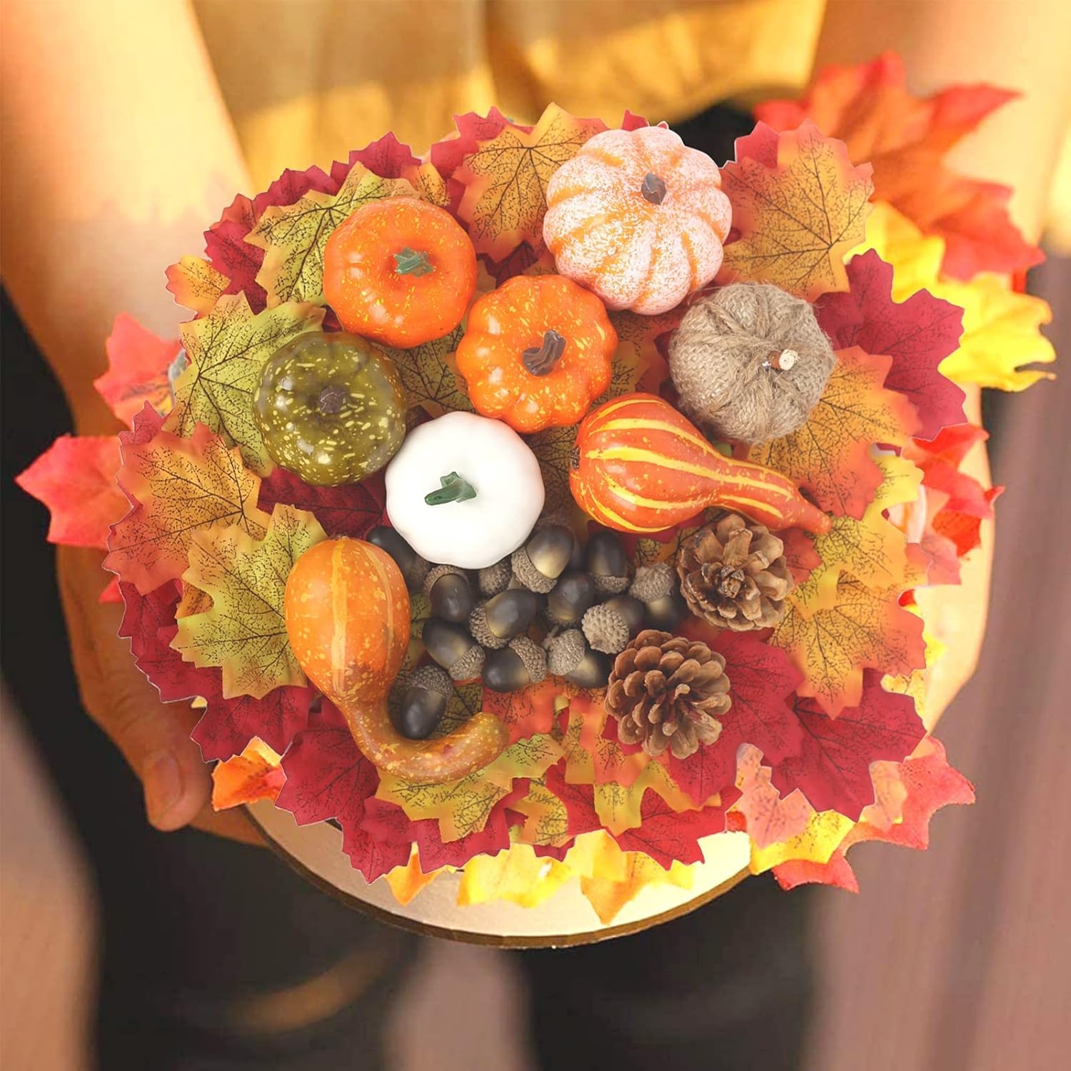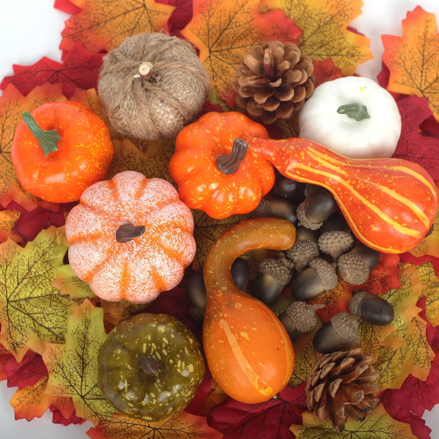 POPOYU Комплект от 123 есенни декорации за маса от изкуствени тикви с декоративни тикви, жълъди, шишарки и листа