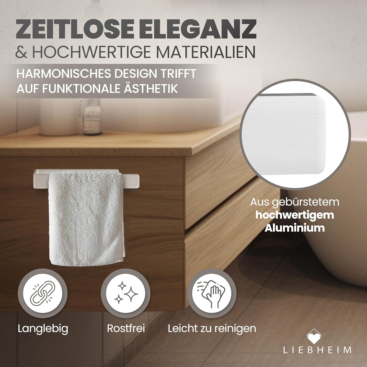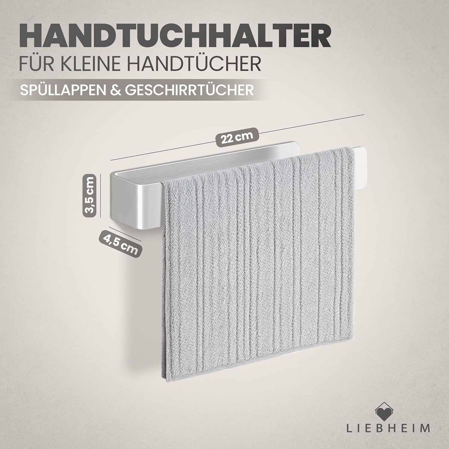• Алуминий без ръжда: висококачествена и издръжлива поставка за кърпи за залепване благодарение на алуминия, с дължина 22 см или 40 см, идеална за малки или големи кърпи.