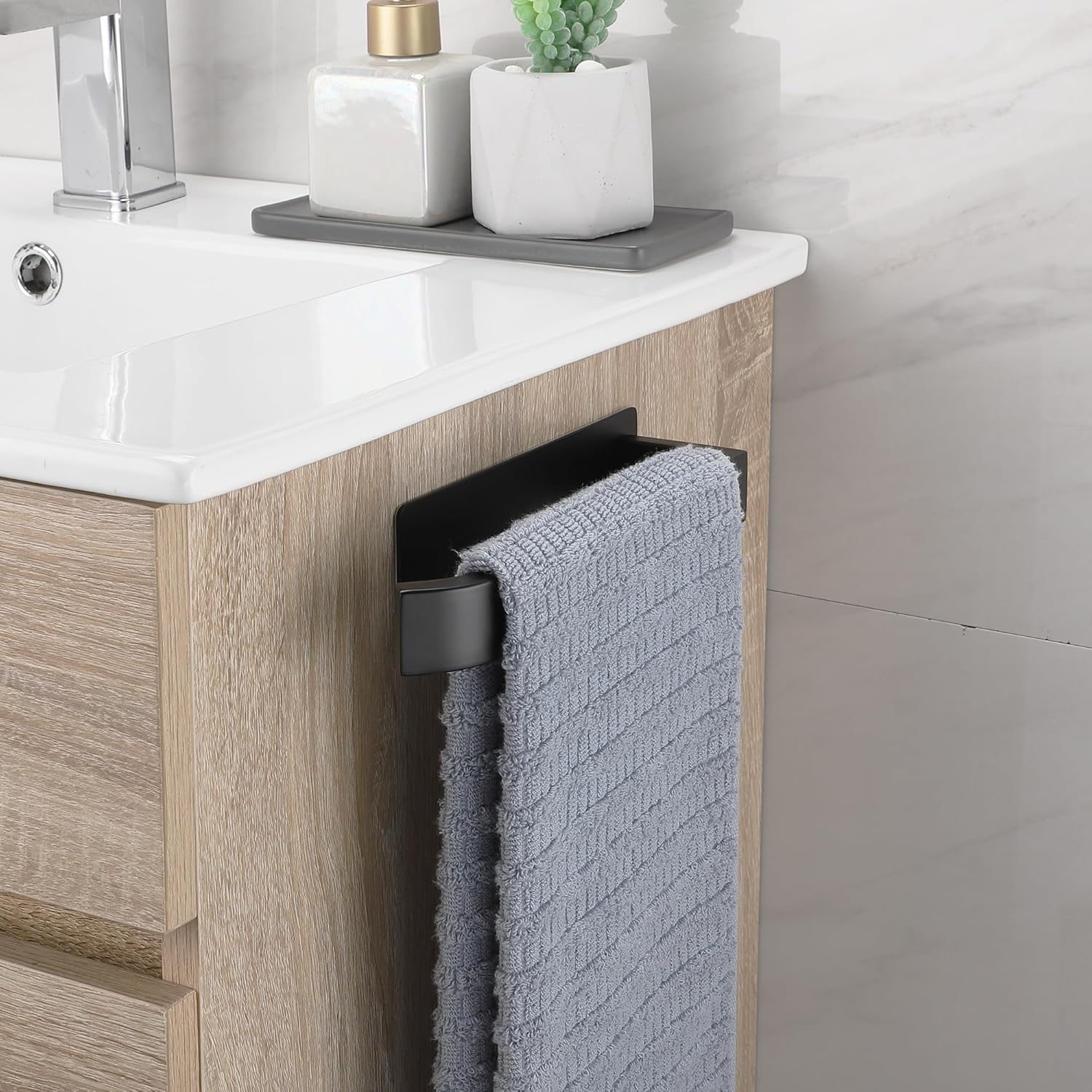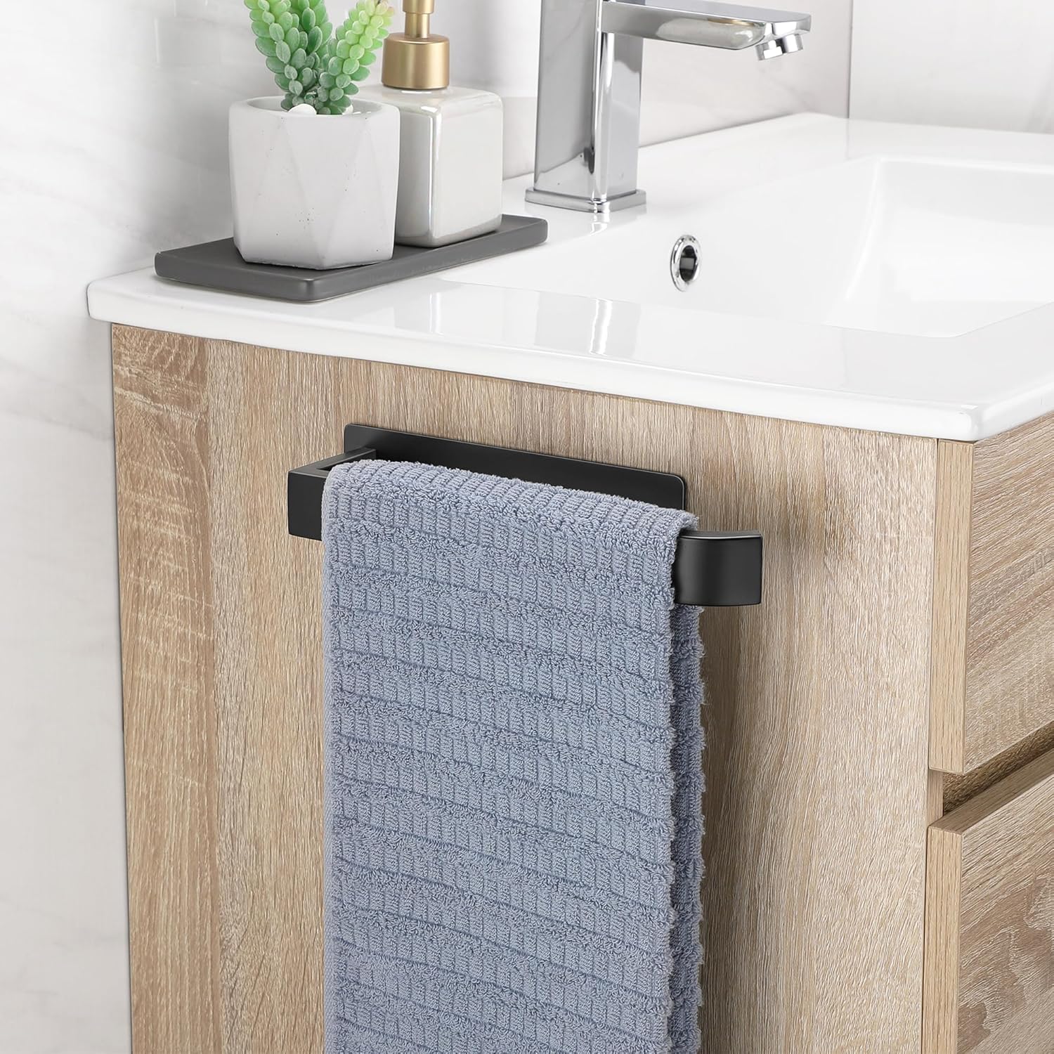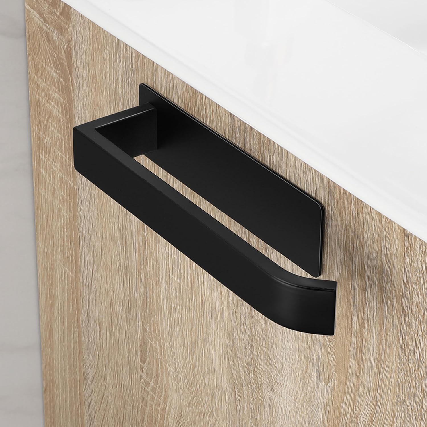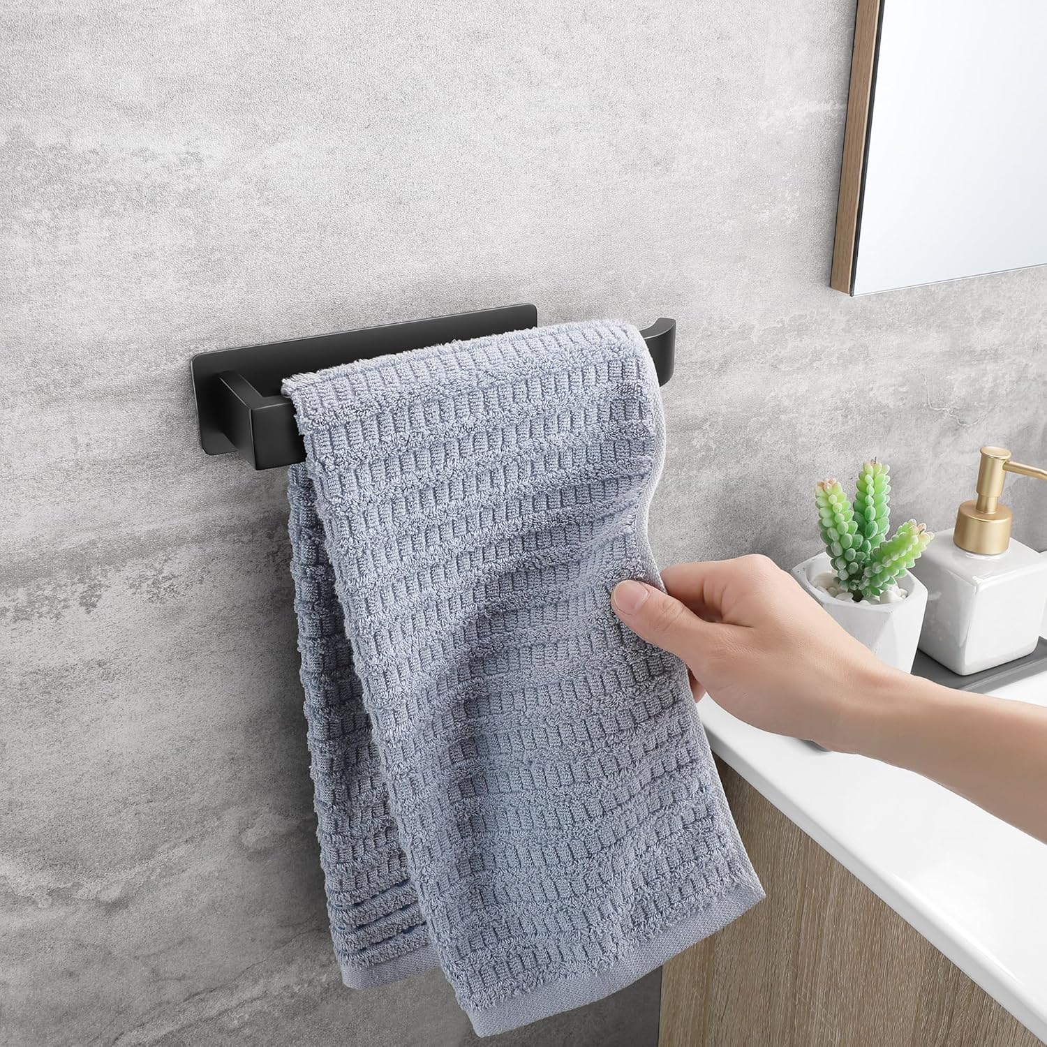 Поставка за кърпи, без пробиване, черна, матова, самозалепваща се, от неръждаема стомана 304, еднораменна поставка за кърпи, стенен държач за кърпи, държач за кърпи за залепване за баня и кухня, 22 см