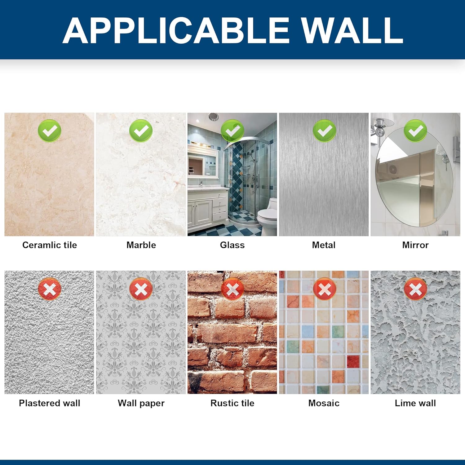 Трябва да се монтира върху гладка повърхност, като керамични плочки, мрамор, стъкло, шкафове, стени от масивно дърво и др. Не е подходящ за боядисване на стени и тапети.
