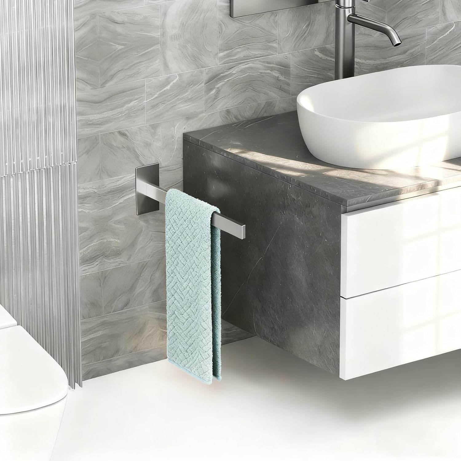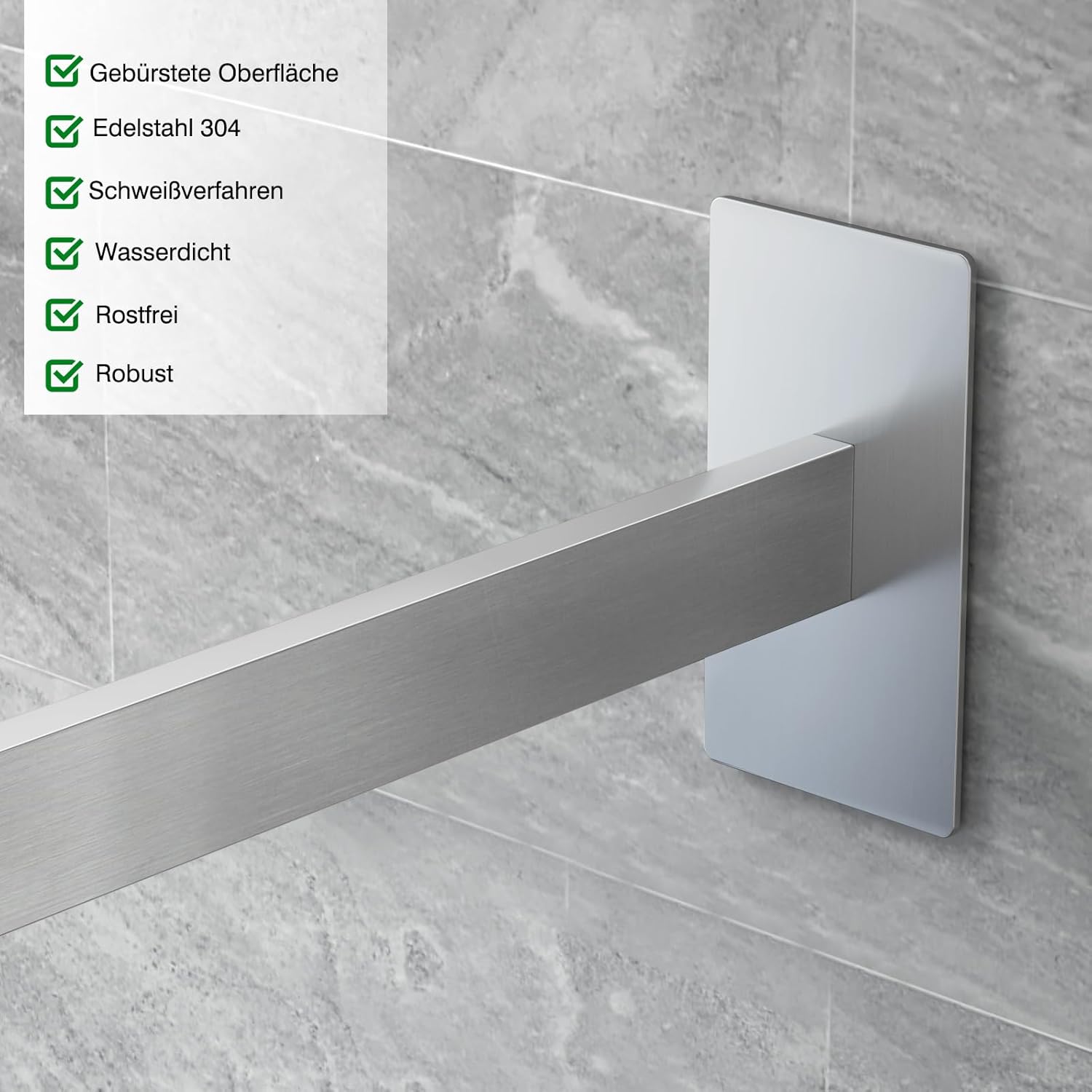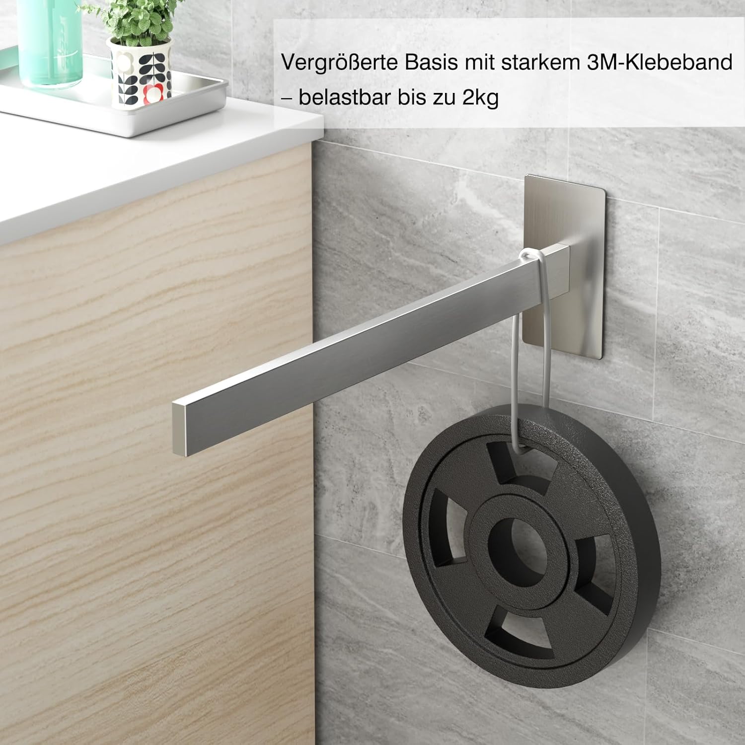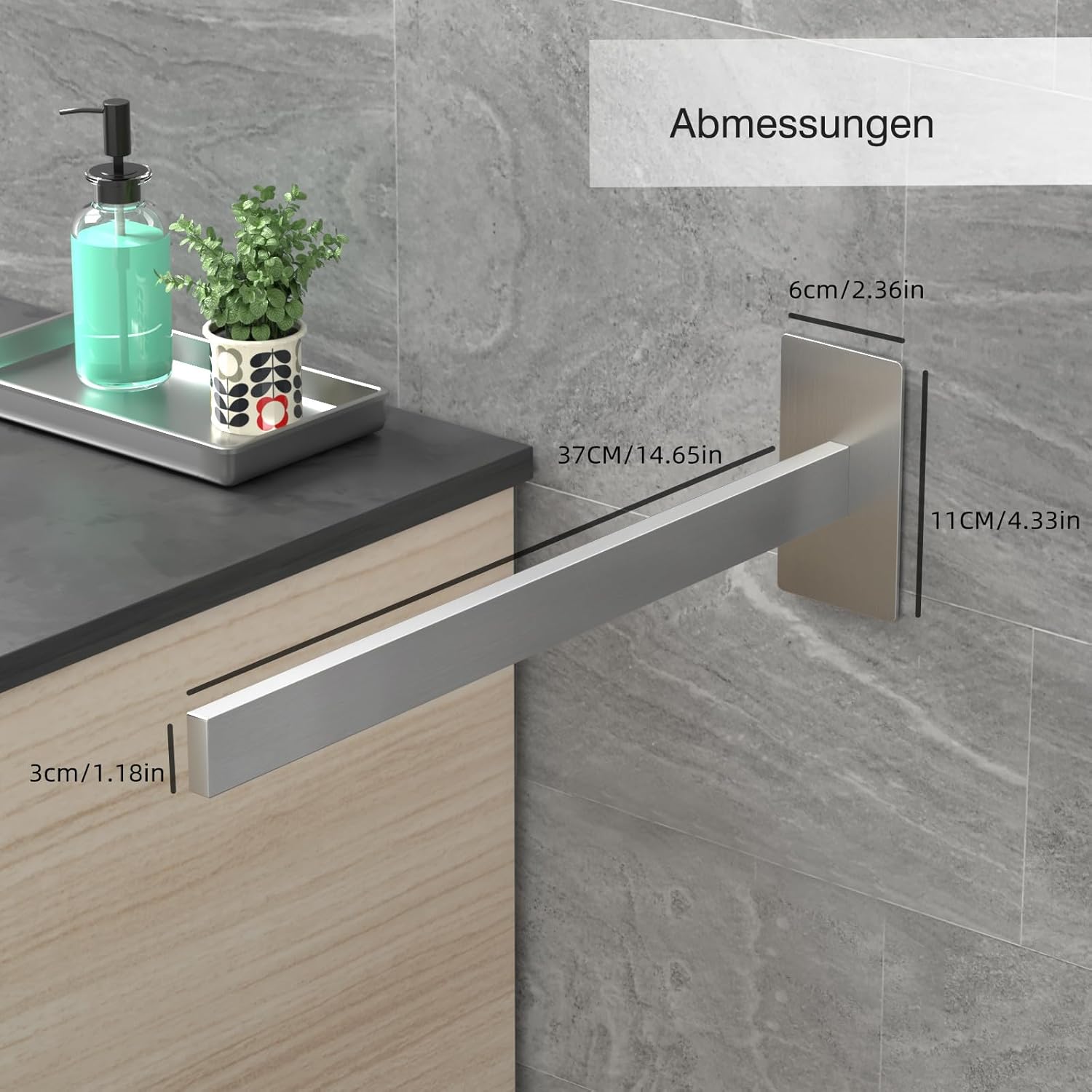 Поставка за кърпи без пробиване, държач за кърпи от неръждаема стомана, самозалепващ се държач за кърпи за баня, едно рамо за баня и кухня