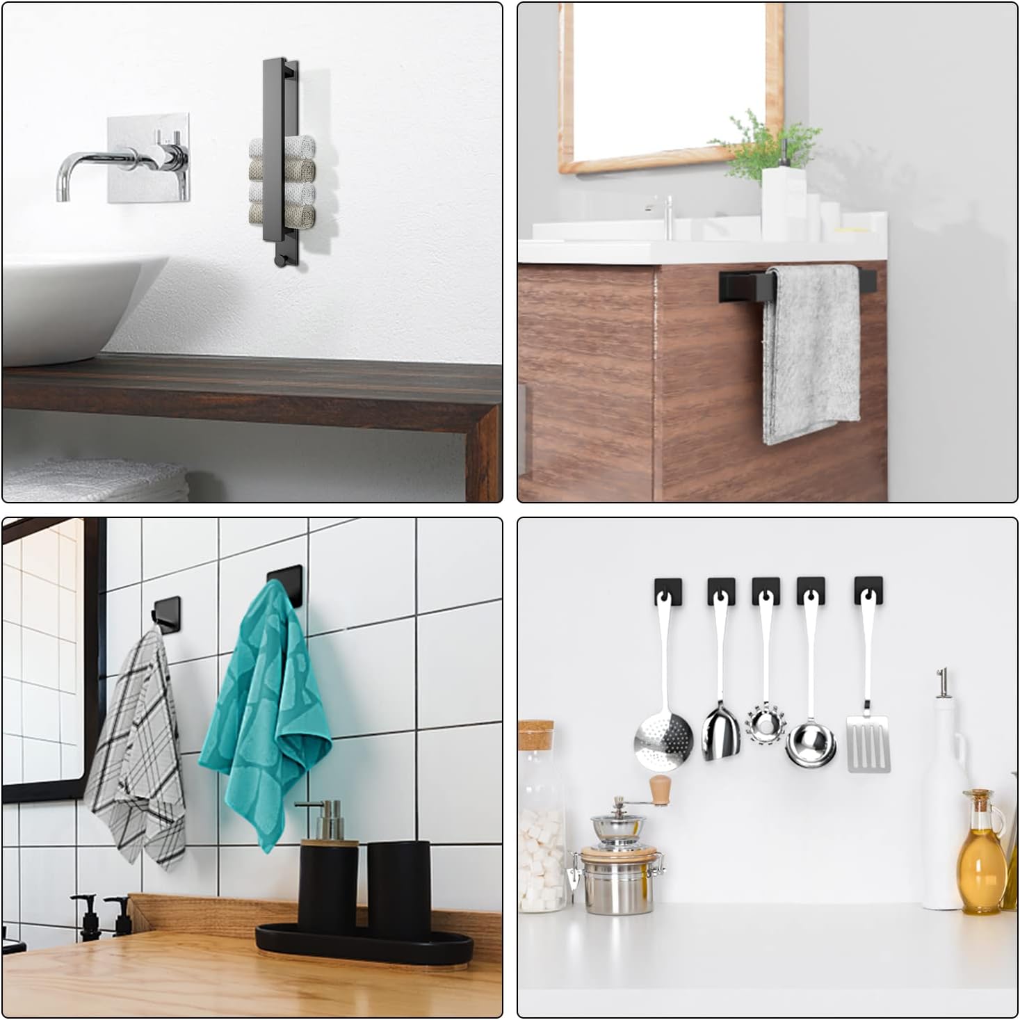 Име на продукта: държач за кърпи без пробиване, черен мат. Метод на монтаж: самозалепващ се монтаж. Цвят: матово черен.