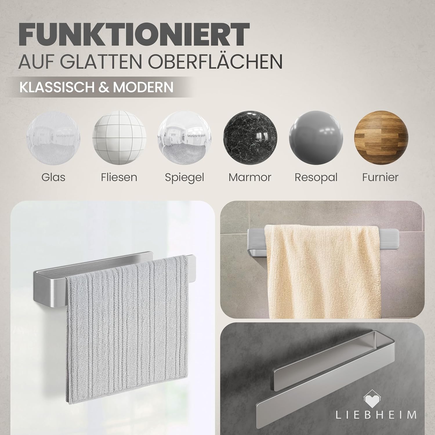 • Алуминий без ръжда: висококачествена и издръжлива поставка за кърпи за залепване благодарение на алуминия, с дължина 22 см или 40 см, идеална за малки или големи кърпи.