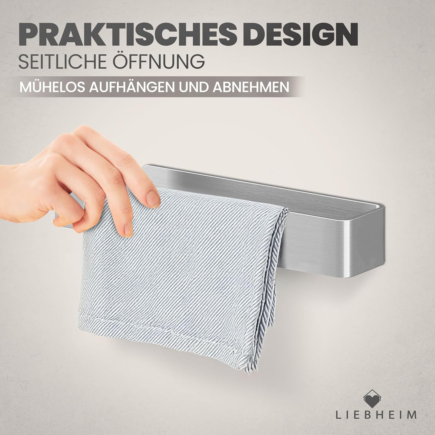 • Улеснете ежедневието: благодарение на страничния отвор, вече не е нужно да се притеснявате за окачване на предмети върху пръта. Кърпата вече може лесно да се окачи отстрани и да се сваля също толкова бързо.