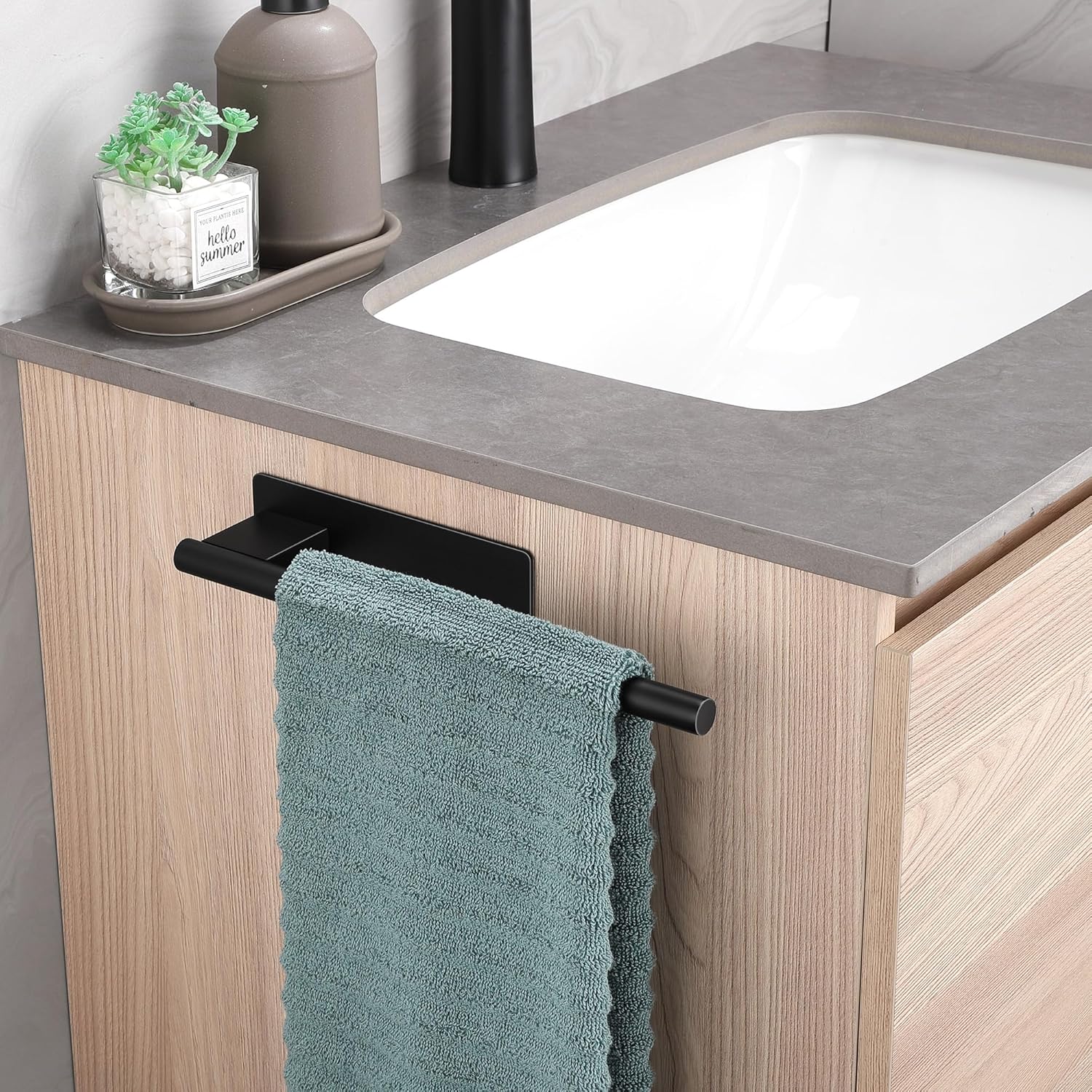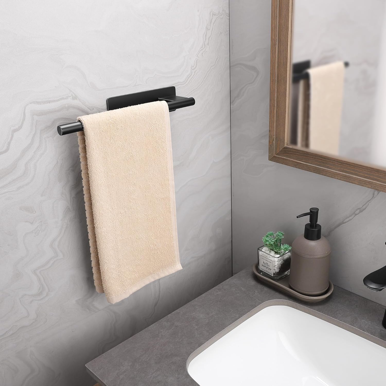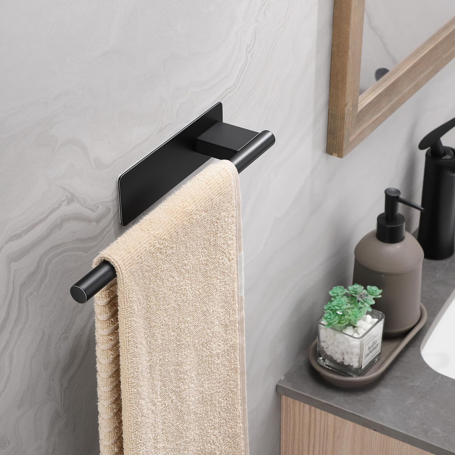 Поставка за кърпи, без пробиване, самозалепваща се, черна матова 304 неръждаема стомана, държач за кърпи за баня, едно рамо, стенен монтаж, за баня и кухня
