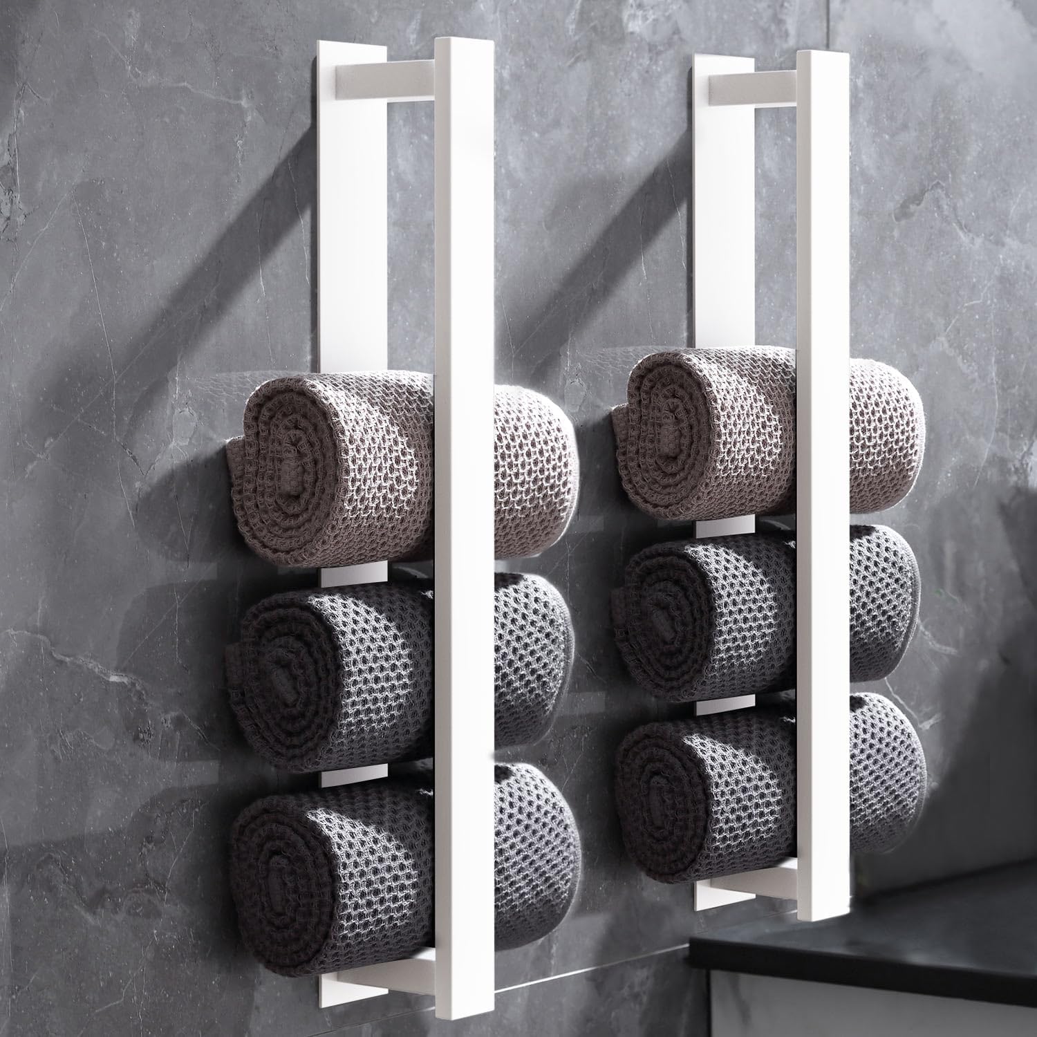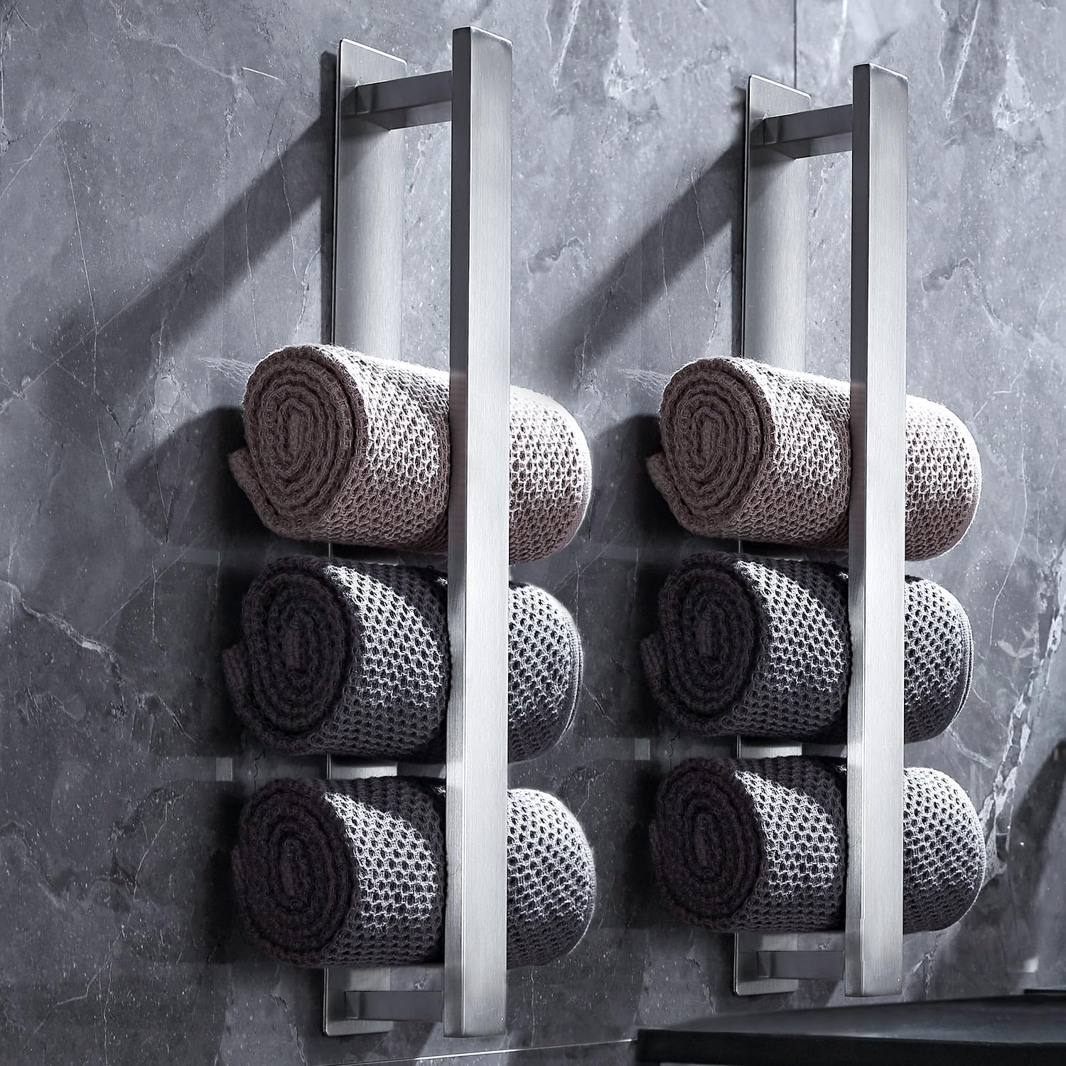 Използвайте държачи за кърпи, за да организирате банята си и да държите ежедневните си неща под ръка, за да придадете на банята си изискан вид. Държачите за кърпи са с елегантни, семпли линии и монтаж без пробиване, които придават на вашата баня и дом по-модерни елементи. Тези държачи за кърпи за баня са изработени от висококачествена неръждаема стомана SUS 304. Тежка, здрава метална конструкция. Аксесоари и оборудване за баня, които не бива да липсват във всяка баня - дори във вашата!
