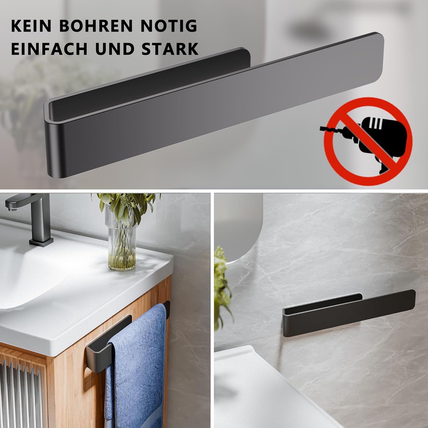 Поставка за кърпи, Поставка за кърпи без пробиване, Алуминиева изцяло метална поставка за кърпи за баня и кухня, Матово черно