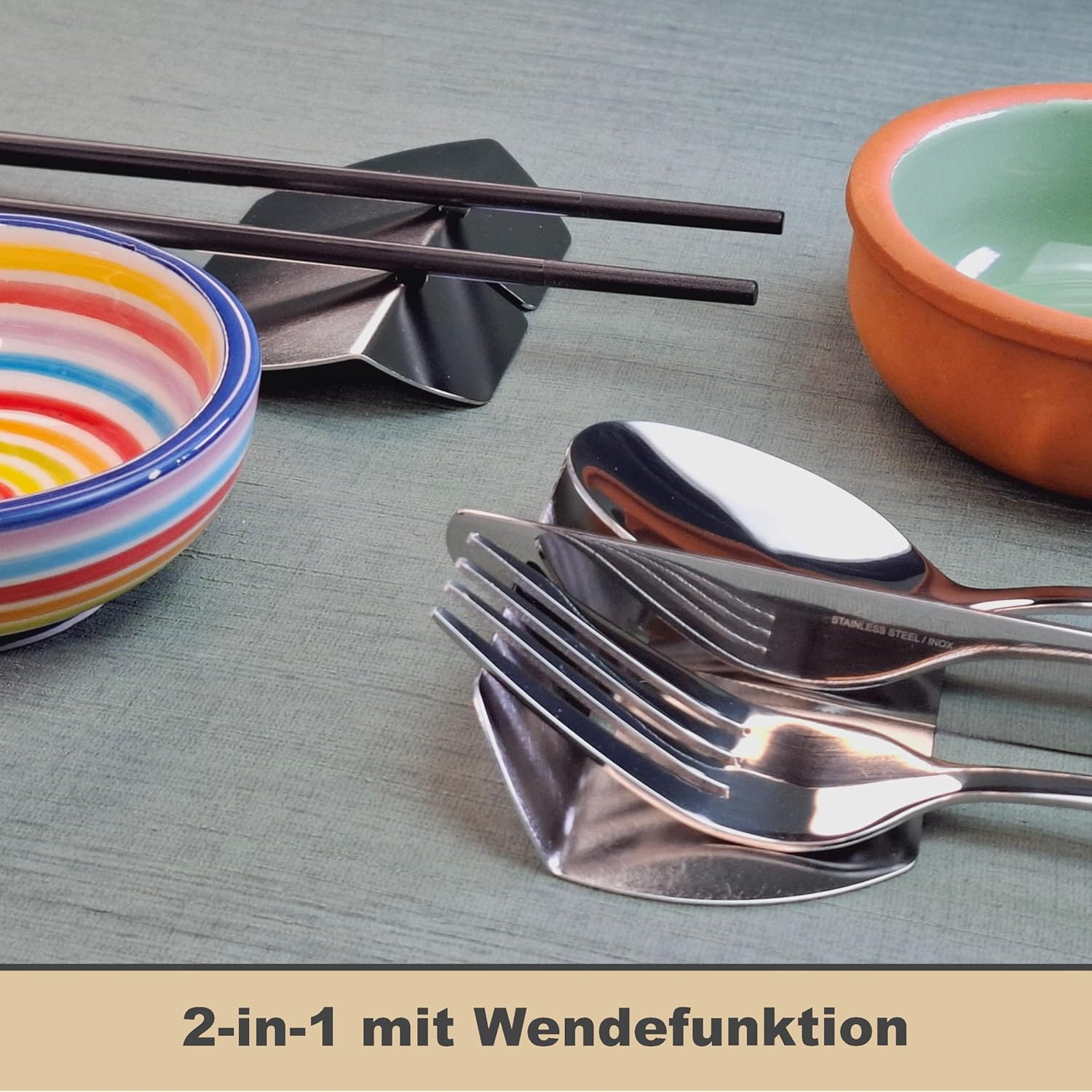 • [Поставка за клечки за хранене и нож в едно] Тази поставка за клечки за хранене може да се използва и като поставка за ножове, поставка за прибори за хранене или елегантна поставка за клечки за хранене. Идеална е за ножове, вилици, лъжици или клечки за хранене – благодарение на гениалния ѝ обръщаем дизайн.