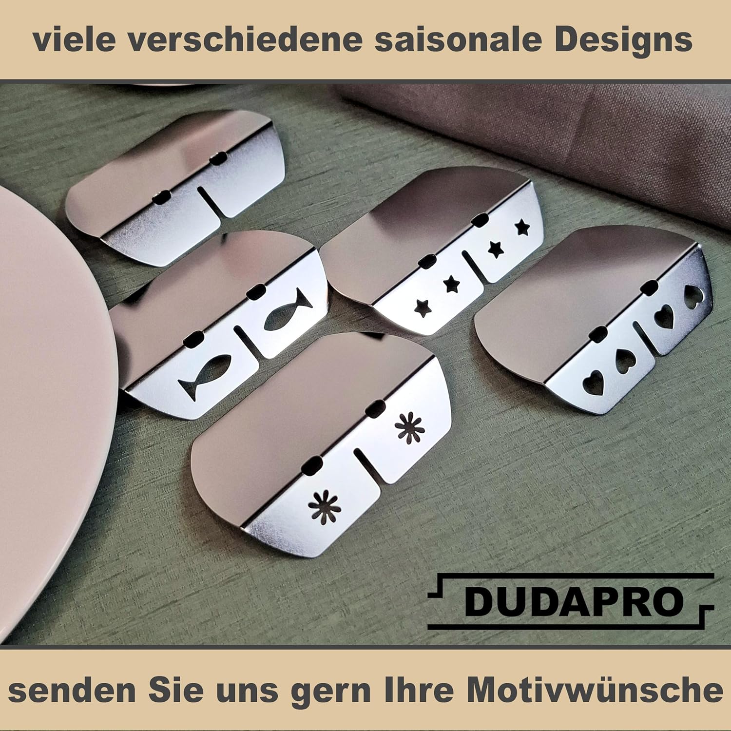 • [Чиста изработка на поставките за прибори за хранене] Всички поставки за ножове DUDAPRO са лазерно изрязани. Този прецизен производствен процес гарантира, че всички ъгли на поставките за ножове са чисто заоблени и напълно без грапавини. Резултатът: Без грозни ръбове и удобна работа.
