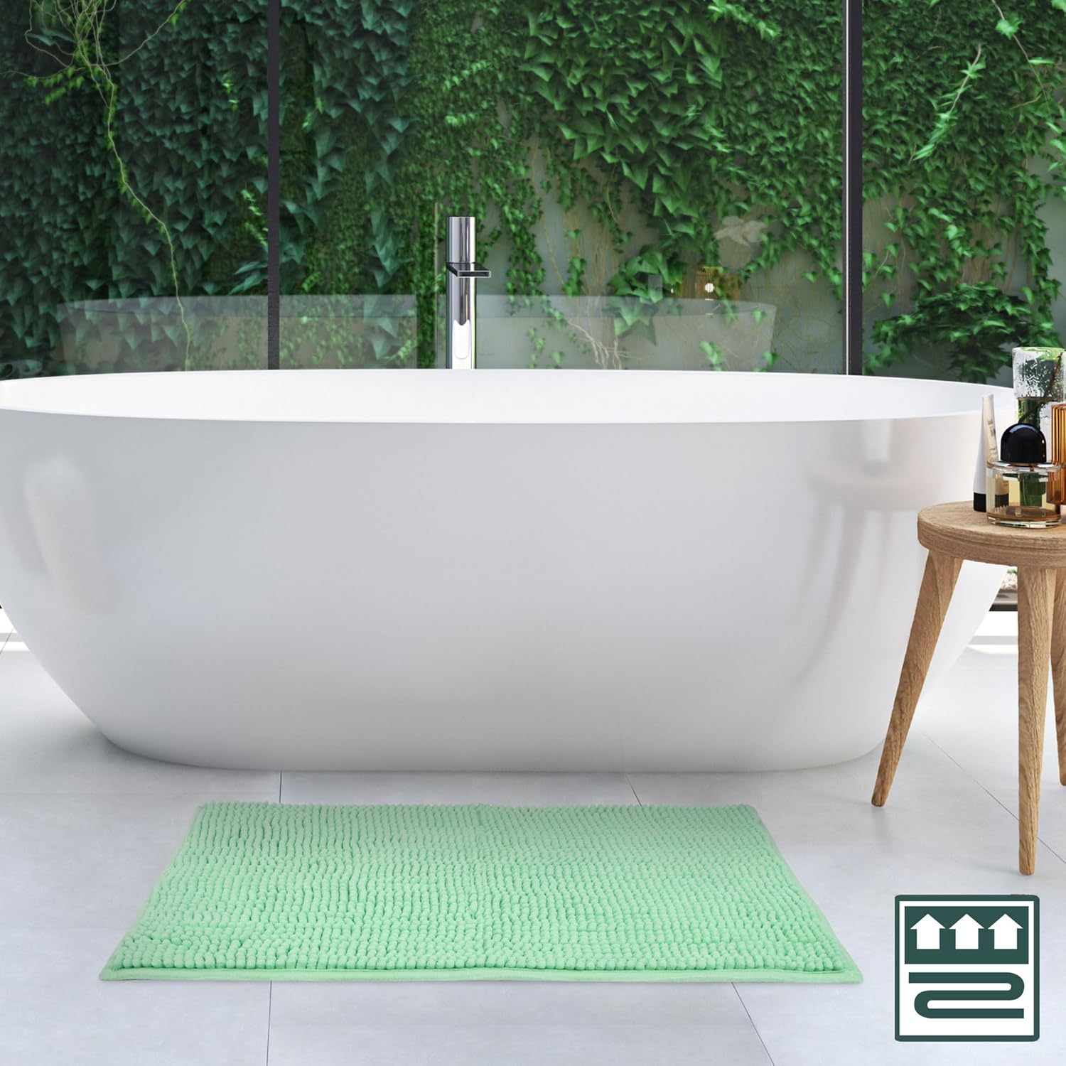 Прост дизайн: висококачествената постелка за баня е изключително удобна и комфортна за влизане. Подходяща е за подово отопление и благодарение на неплъзгащия се гръб, килимчето е идеално и за деца. Постелка за баня – постелката за баня е с височина 13 мм, което означава, че килимчето за баня абсорбира солидно течности. Така можете да подсушите мокрите си крака върху приятната масажираща повърхност. Неплъзгаща се постелка за баня – постелката за баня може да се пере на 40°C и може да се използва за душ, вана или тоалетна като постелка за баня. Но също така и в други помещения, като спални или кухни, постелката за баня може да се използва като килим за стая. Цветове и постелки – постелката за душ се предлага в различни класически цветове и размери, идеални за стилния декор и индивидуалния размер на вашата стая.
