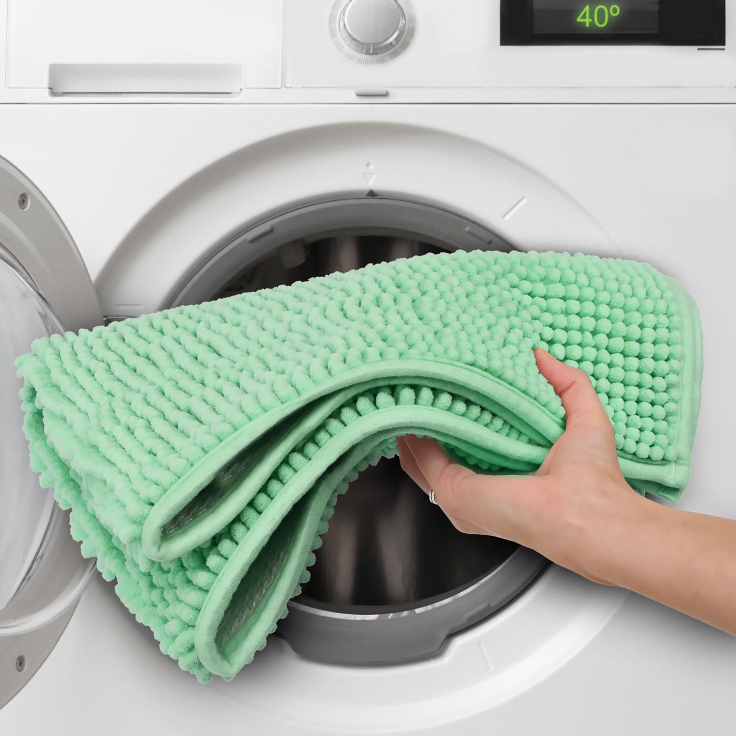 The bath mat is washable at 40 °C and can be used for the shower, bath as a bath mat for the toilet but also in other rooms such as bedroom or kitchen as a room rug.