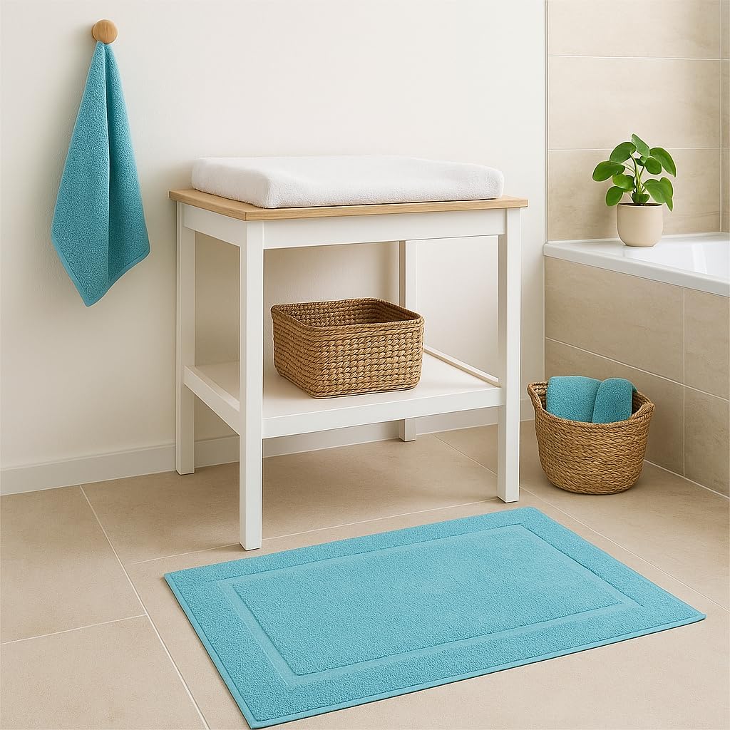 Постелка за баня Betz, постелка за баня, постелка за душ, хавлиена, премиум размер 50 x 70 см, 100% памук, качество 650 г/м², тюркоаз, опаковка от 2