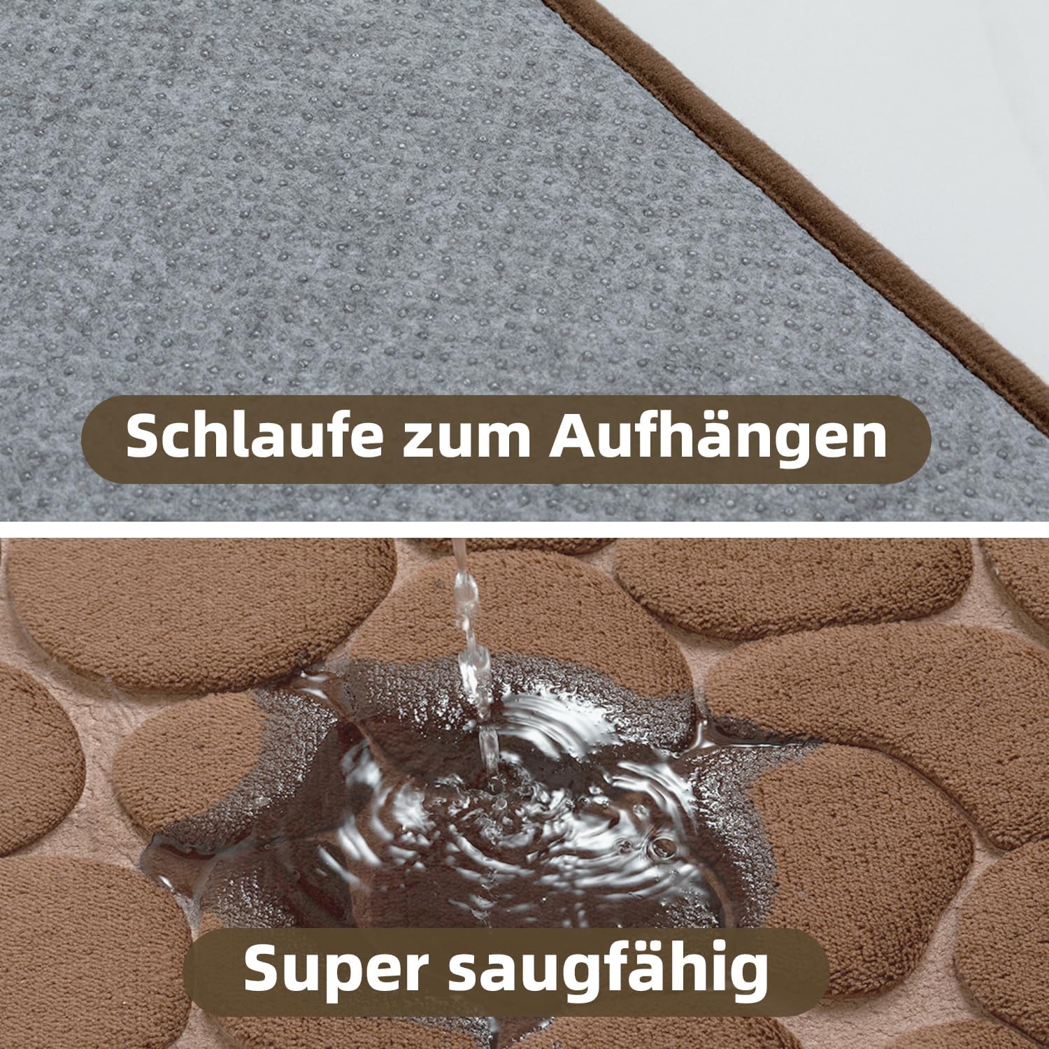 • УНИКАЛНО ИЗОБРАЖЕНИЕ Килимчето за баня има уникален вид на камъчета, който ви помага да се отпуснете и да се свържете с природата. Покрито е с мека коралова кадифена материя, която е нежна за кожата и дишаща и ви помага да се освободите от стреса от деня!