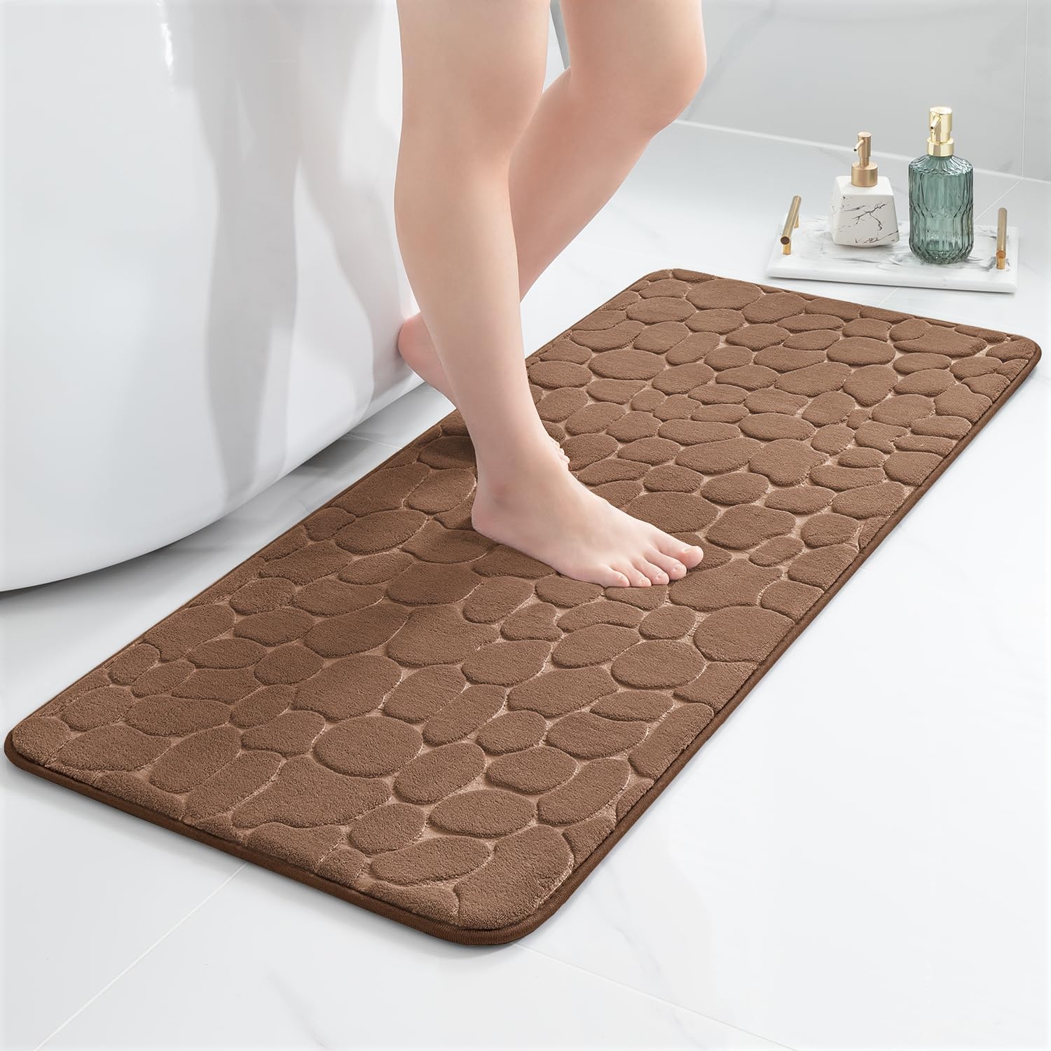 Постелка за баня chakme, Постелка за баня от мемори пяна, Постелка за душ от мемори пяна, Абсорбираща постелка за баня, Килим за баня, Постелка за душ, Декоративна изтривалка за врата, Неплъзгаща се постелка за баня, Хол, 43 x 61 см, Кафяв