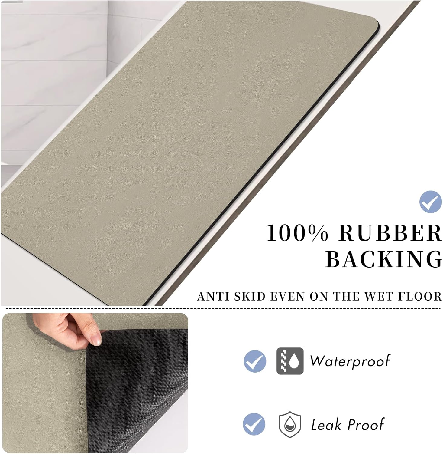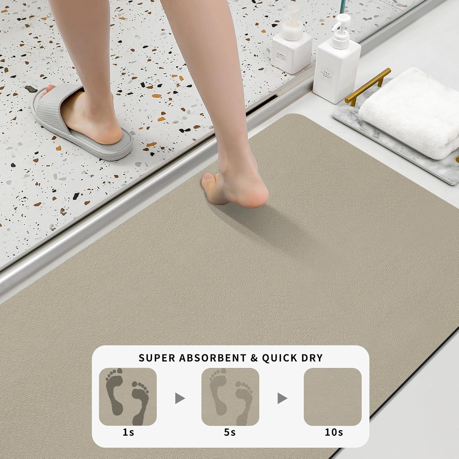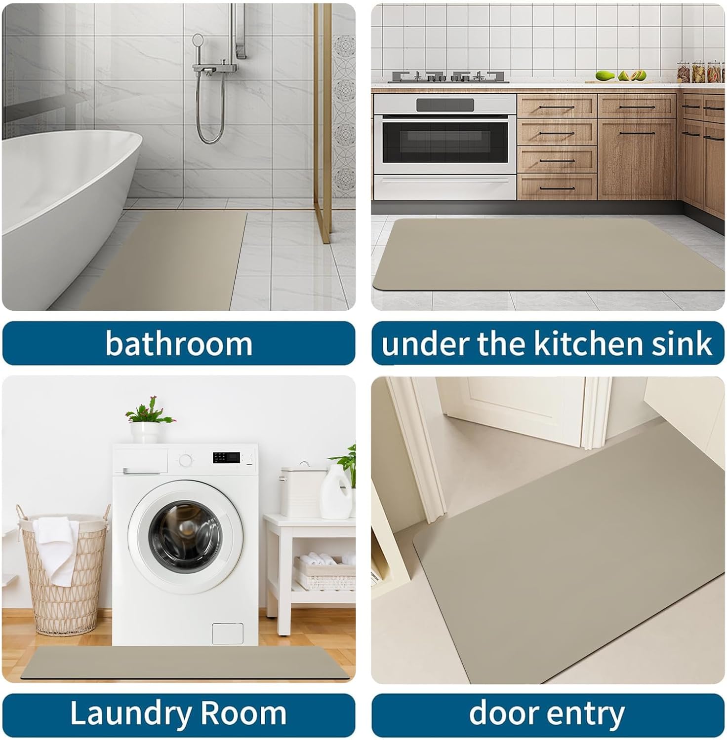 • Разнообразие от размери, от които да избирате: супер абсорбиращата постелка за баня се предлага в три размера: Малка: 40 x 60 см - Идеална за малки пространства, например под единична мивка или извън един душ. Средна: 43 x 80 см - Идеална за средно големи бани. Голяма: 43 x 120 см - Чудесна за по-големи пространства, включително под двойни мивки, вани или големи душ кабини. Изберете правилния размер въз основа на пространството и дизайна на вашата баня, преди да купите.