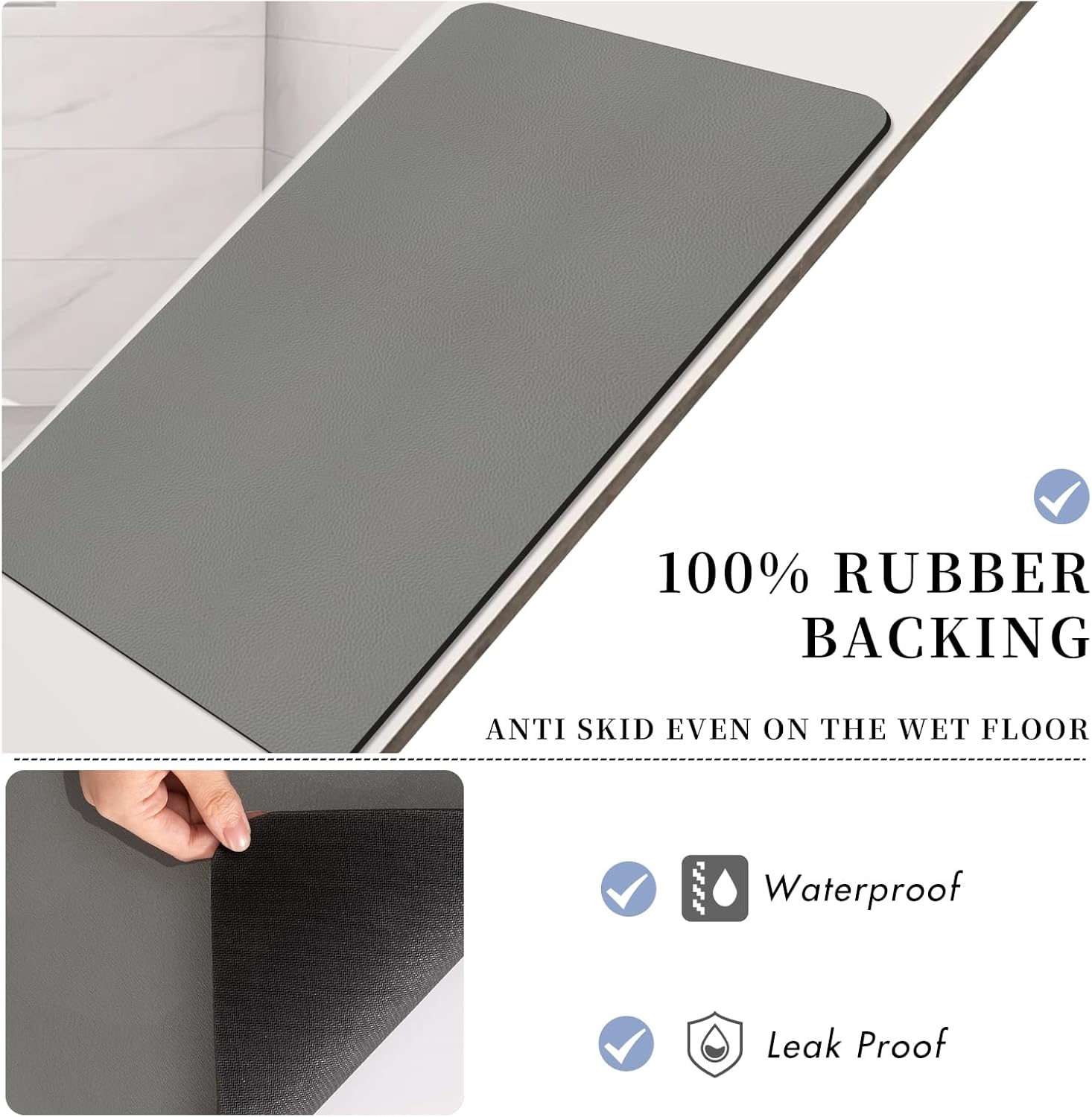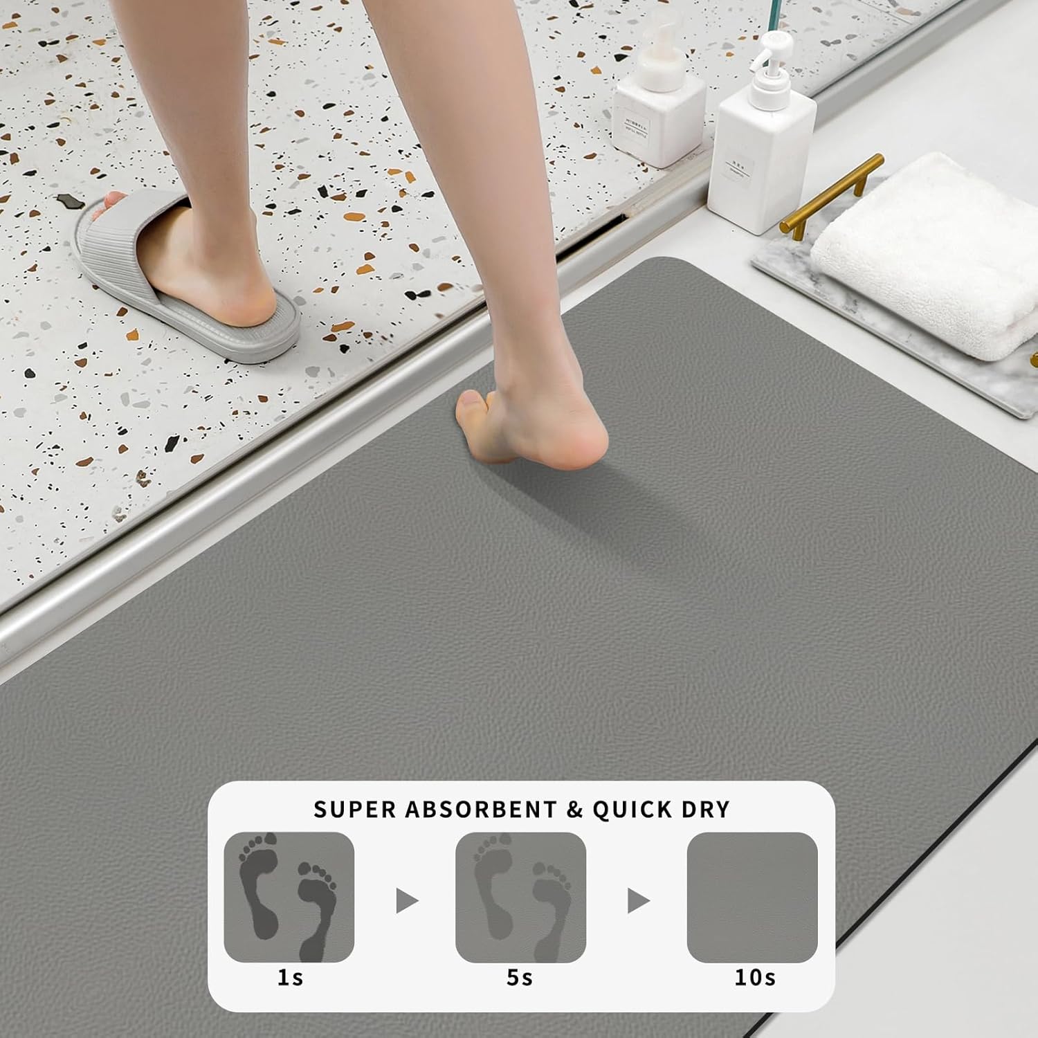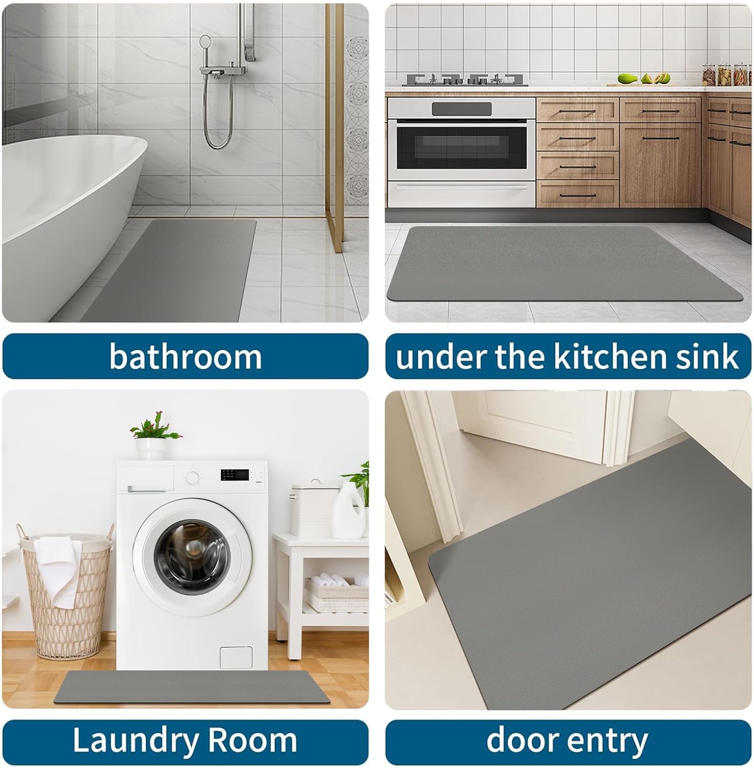 • Разнообразие от размери, от които да избирате: супер абсорбиращата постелка за баня се предлага в три размера: Малка: 40 x 60 см - Идеална за малки пространства, например под единична мивка или извън един душ. Средна: 43 x 80 см - Идеална за средно големи бани. Голяма: 43 x 120 см - Чудесна за по-големи пространства, включително под двойни мивки, вани или големи душ кабини. Изберете правилния размер въз основа на пространството и дизайна на вашата баня, преди да купите.