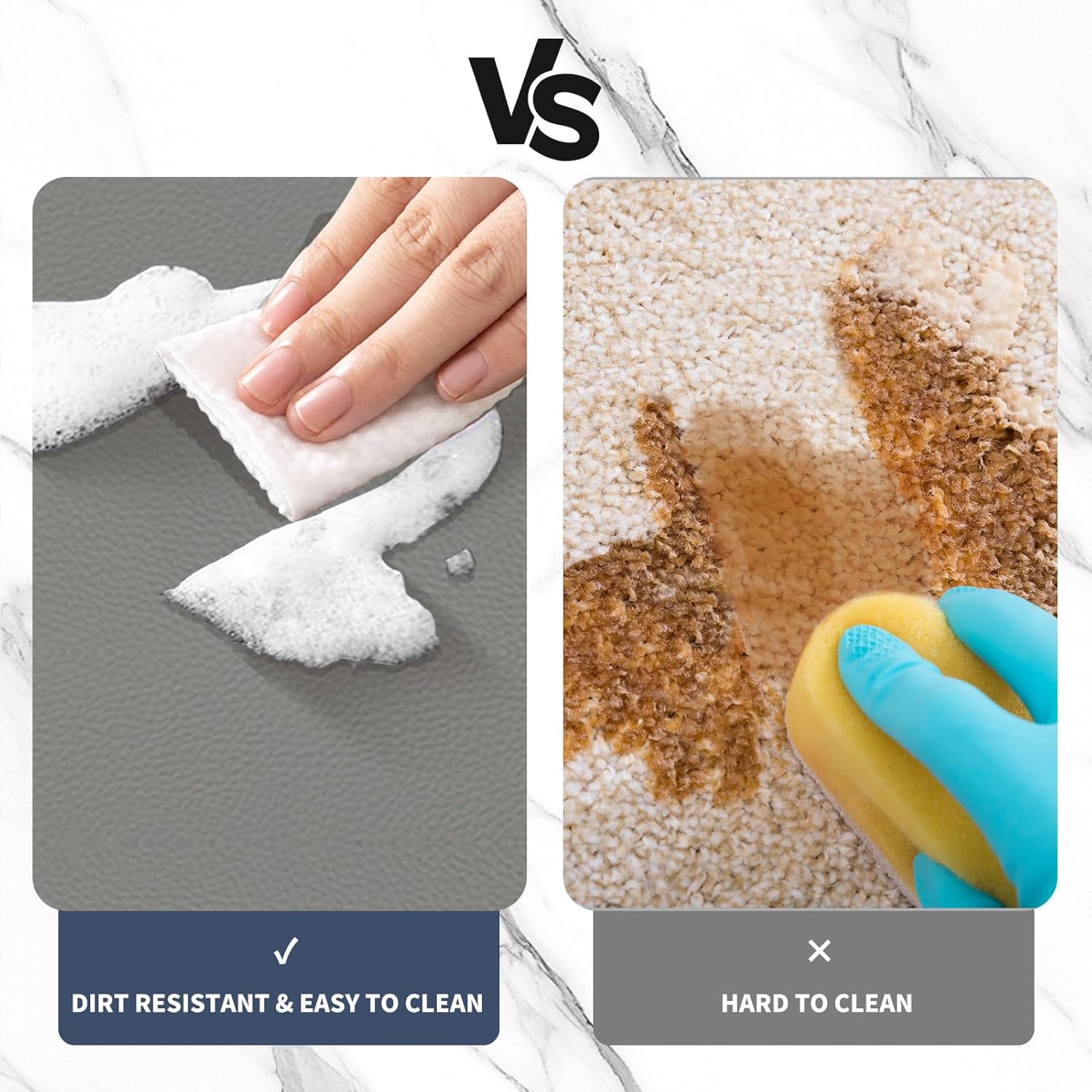 • ЛЕСНО ПОЧИСТВАНЕ За разлика от пухкавите постелки за баня, тези килими за баня съхнат бързо и имат гладка повърхност, която предотвратява залепването на мръсотия и коса. Почистването е лесно - просто избършете постелката с влажна кърпа или изплакнете с душ, за да я поддържате свежа и хигиенична. Това спестява време и енергия, особено за заети хора.