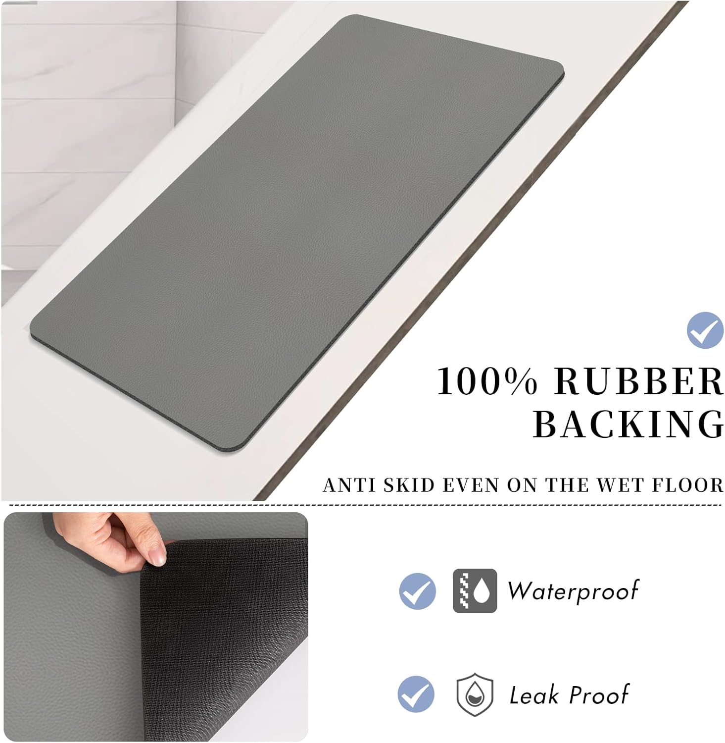 • Разнообразие от размери, от които да избирате: супер абсорбиращата постелка за баня се предлага в три размера: Малка: 40 x 60 см - Идеална за малки пространства, например под единична мивка или извън един душ. Средна: 43 x 80 см - Идеална за средно големи бани. Голяма: 43 x 120 см - Чудесна за по-големи пространства, включително под двойни мивки, вани или големи душ кабини. Изберете правилния размер въз основа на пространството и дизайна на вашата баня, преди да купите.