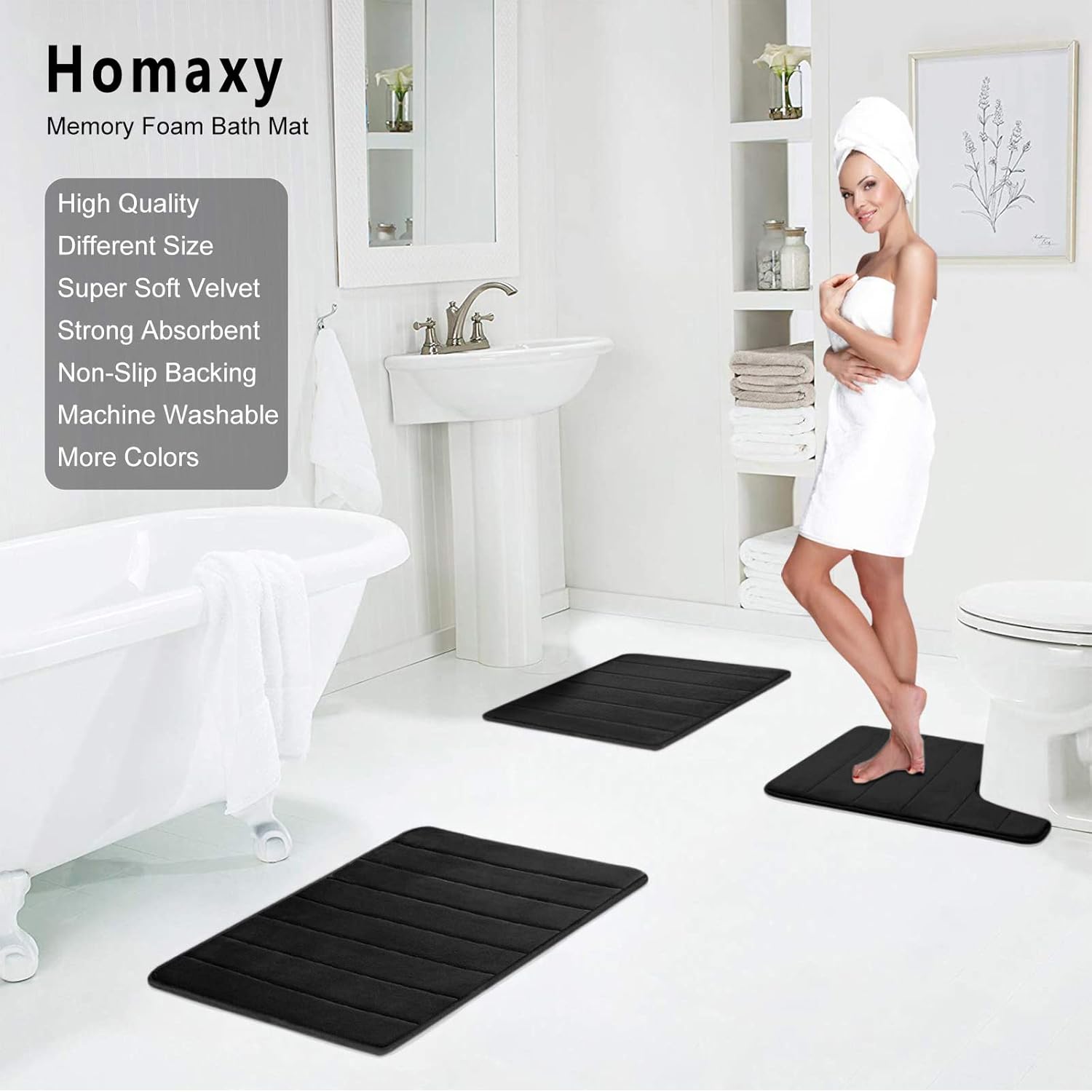 Постелка за баня Homaxy от мемори пяна, абсорбираща, неплъзгаща се, переща се - 41 x 61 см, черна