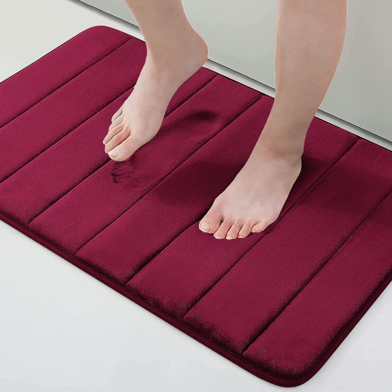 • Меки и удобни: Тези постелки за баня са пълни с най-висококачествена мемори пяна, а външният материал има текстурата на микрофибърен коралов кадифе; ултра меки и уютни, нежни към кожата и ще осигурят облекчение за вас и вашите крака.