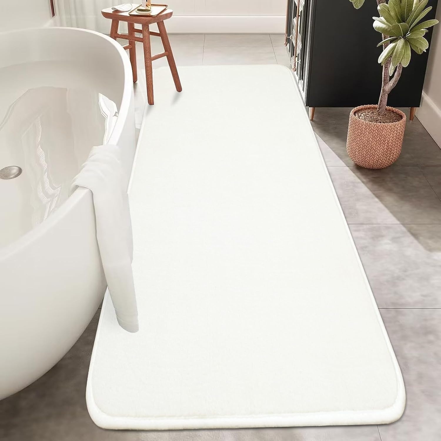 Плюшена и изключително абсорбираща постелка за баня поддържа подовете на банята ви сухи; Висококачественият микрофибърен материал бързо и ефективно улавя и абсорбира излишната вода и влага от ваната, душа и мивката.