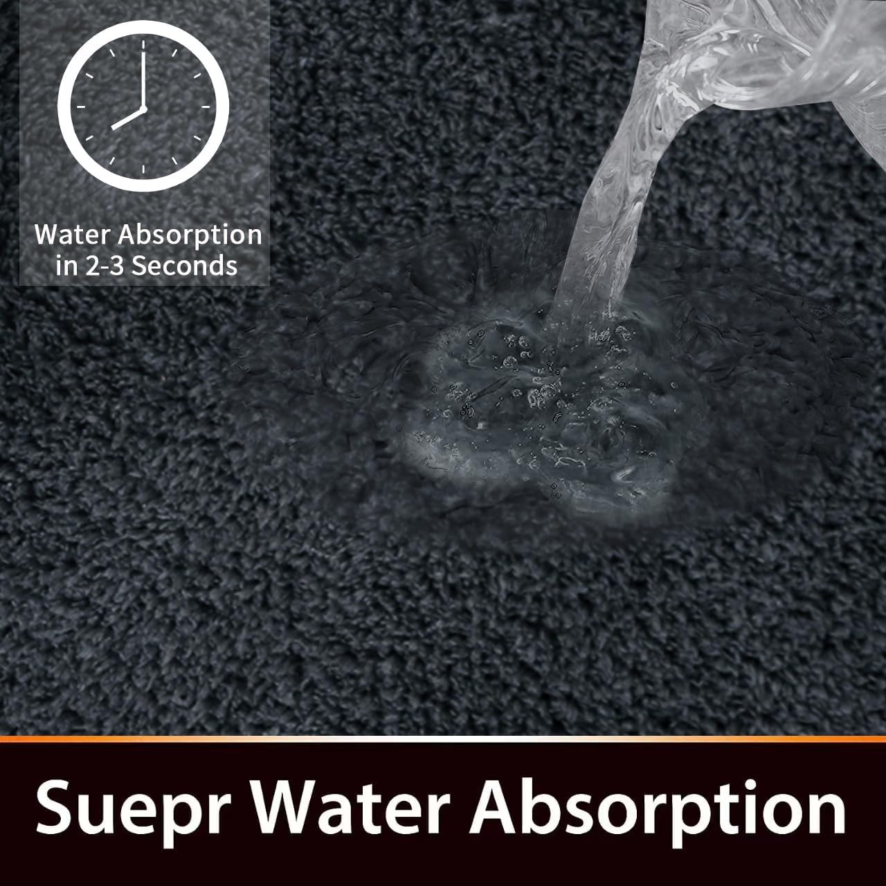 Плюшена и изключително абсорбираща постелка за баня поддържа подовете на банята ви сухи; Висококачественият микрофибърен материал бързо и ефективно улавя и абсорбира излишната вода и влага от ваната, душа и мивката.