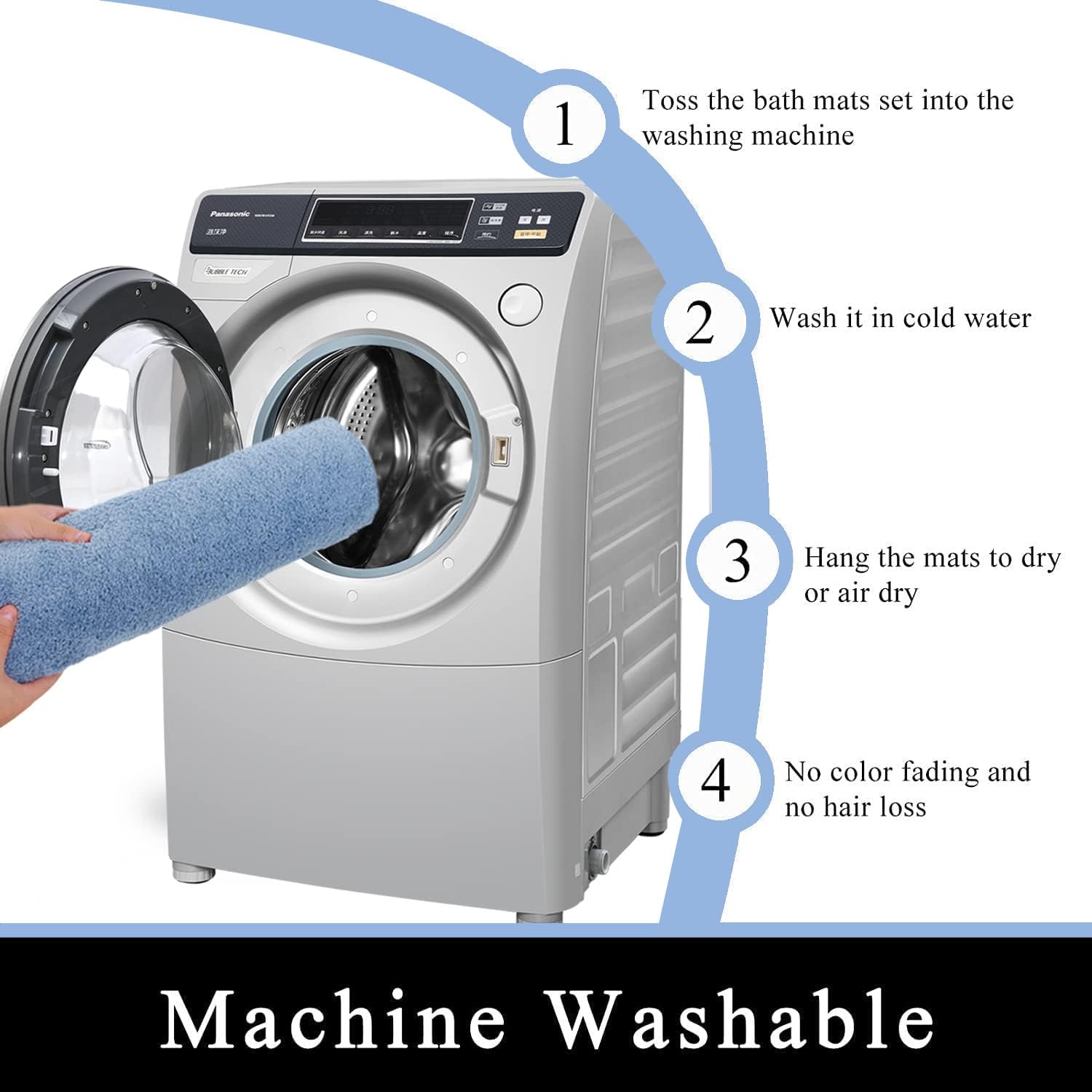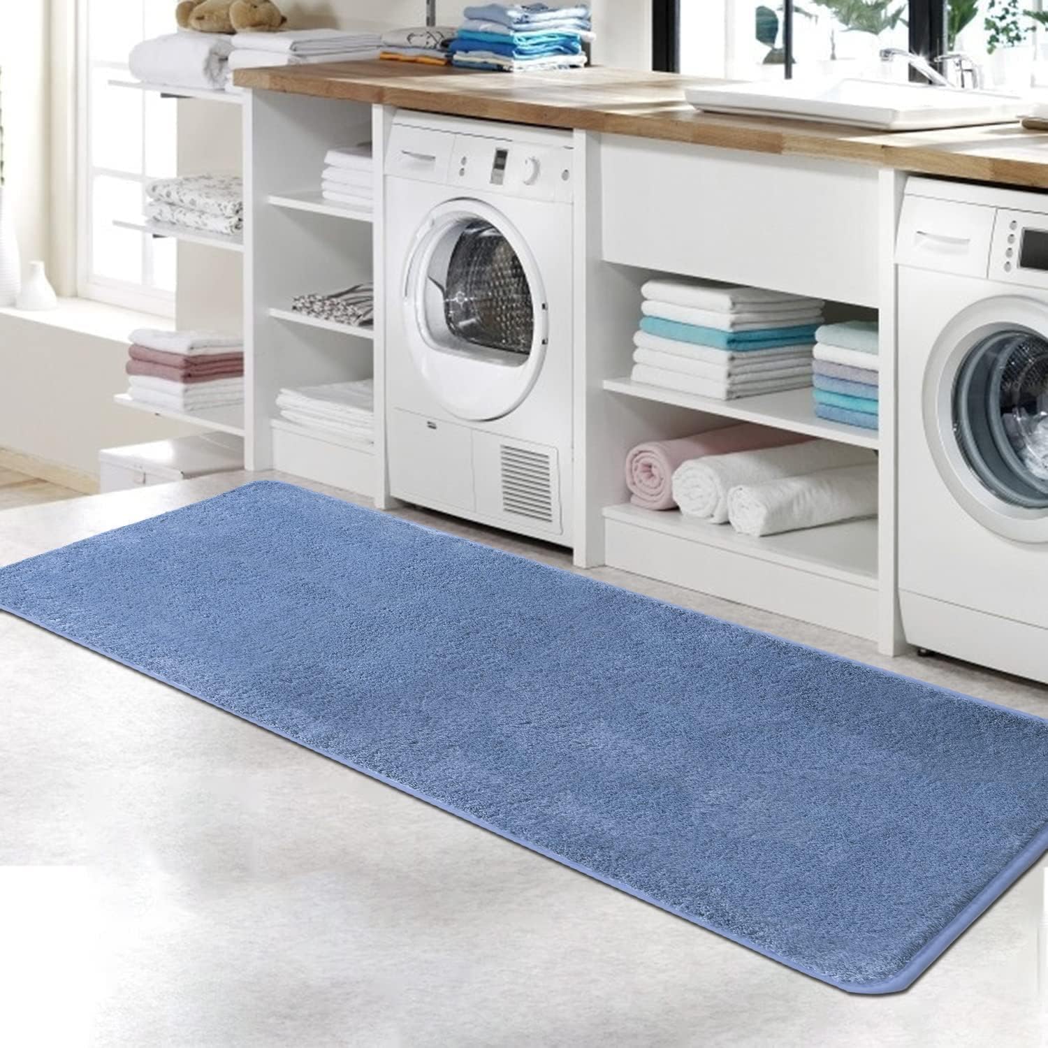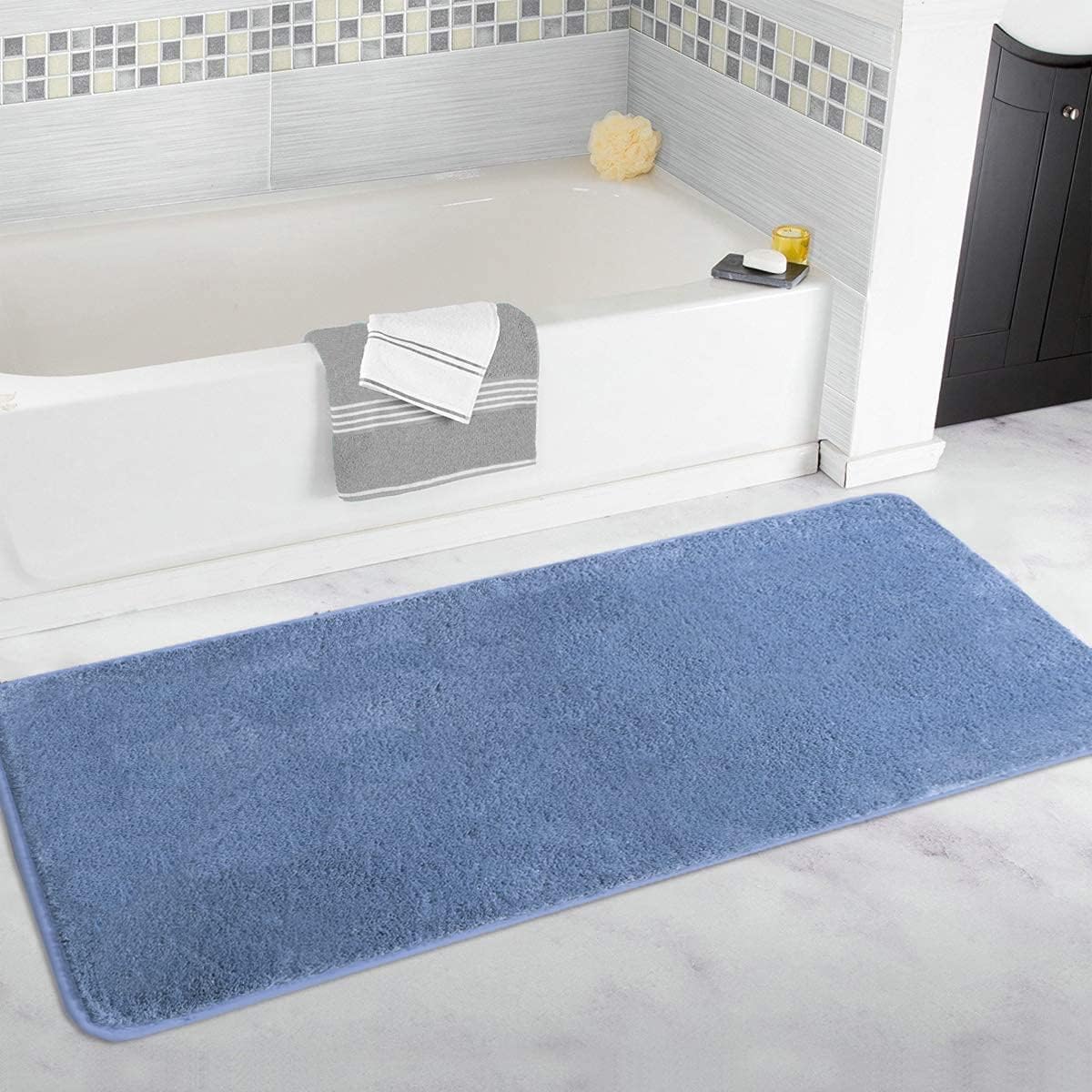 Плюшена и изключително абсорбираща постелка за баня поддържа подовете на банята ви сухи; Висококачественият микрофибърен материал бързо и ефективно улавя и абсорбира излишната вода и влага от ваната, душа и мивката.