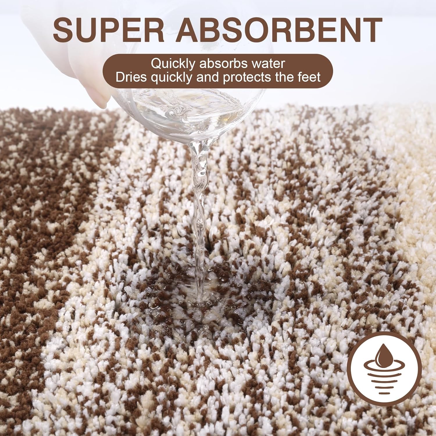 • Голям капацитет за абсорбиране на вода: рошавата микрофибърна постелката за баня е по-абсорбираща от памучните килими за баня. Високият 15 мм косъм предпазва пода от капене на вода, докато излизате от ваната, душа или спа центъра, или се приготвяте до мивката. Влагата се задържа в дълбокия косъм на постелката за баня, поддържайки пода на банята чист и сух.
