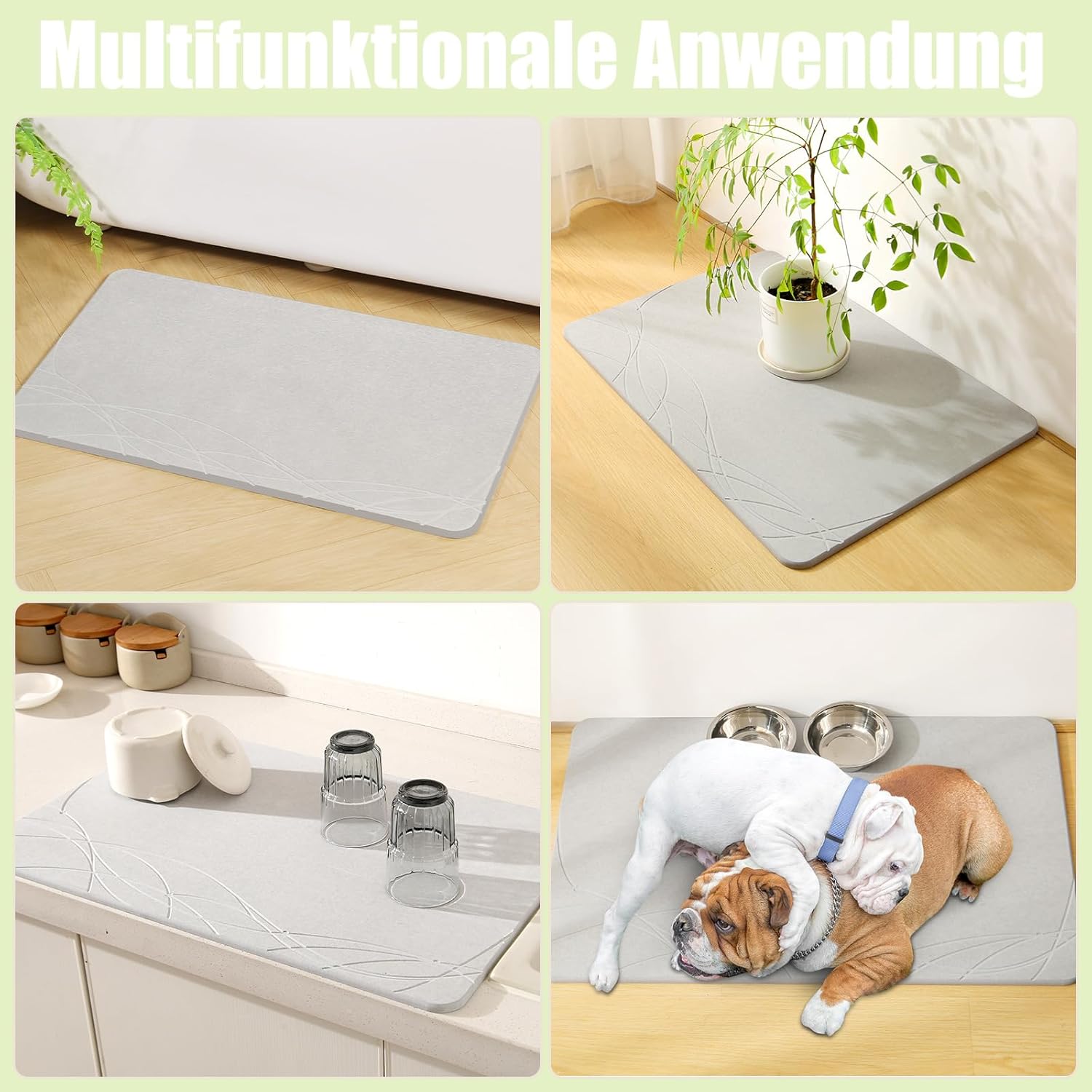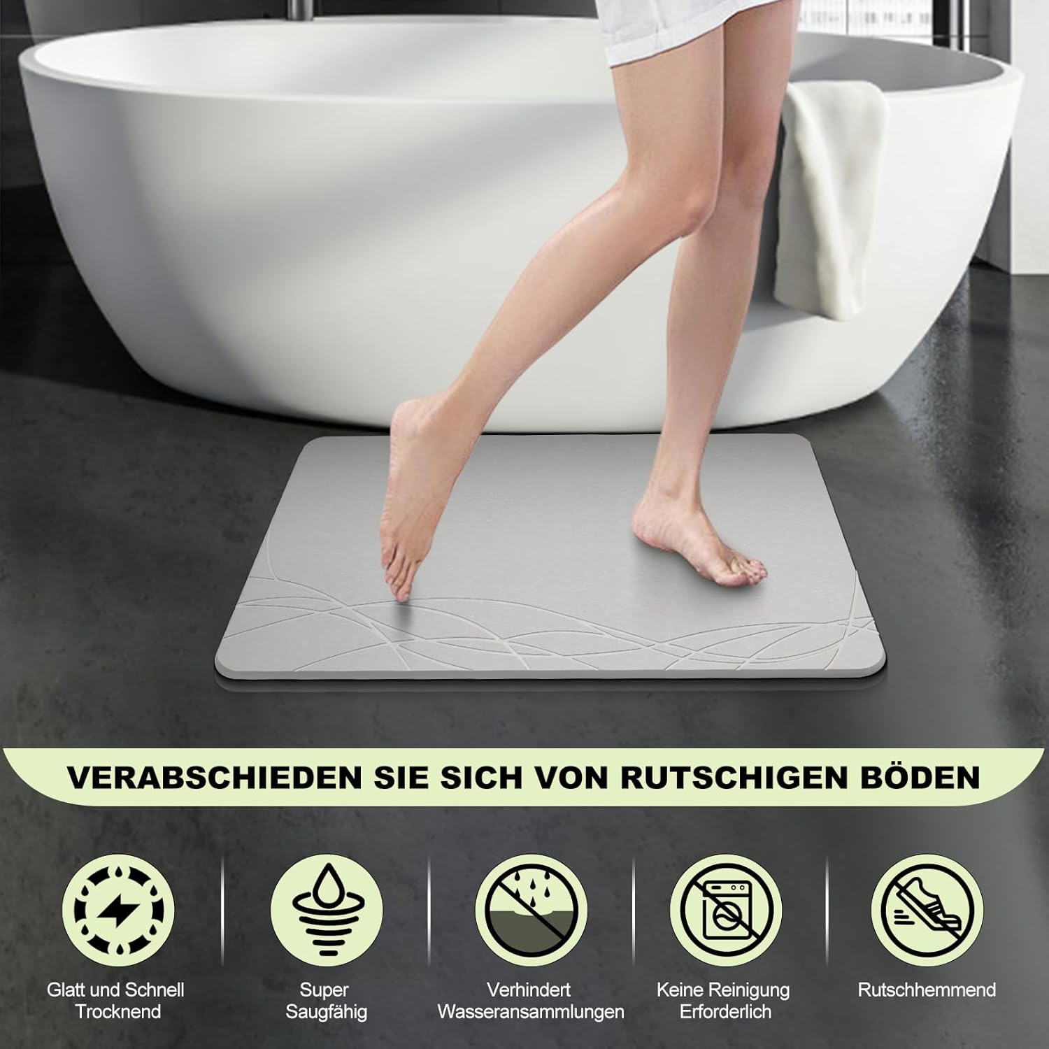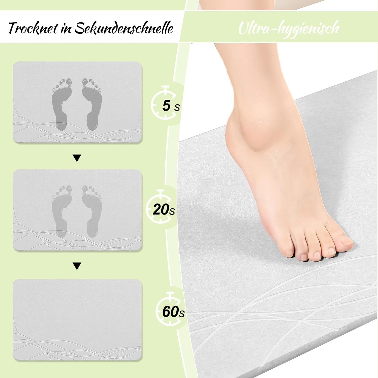 Изработени от издръжлива диатомитна пръст, нашите постелки за баня абсорбират влагата и съхнат бързо, за разлика от конвенционалните постелки за баня, които не го правят. Това поддържа работните повърхности в банята и кухнята, както и домакинските предмети чисти и подредени.