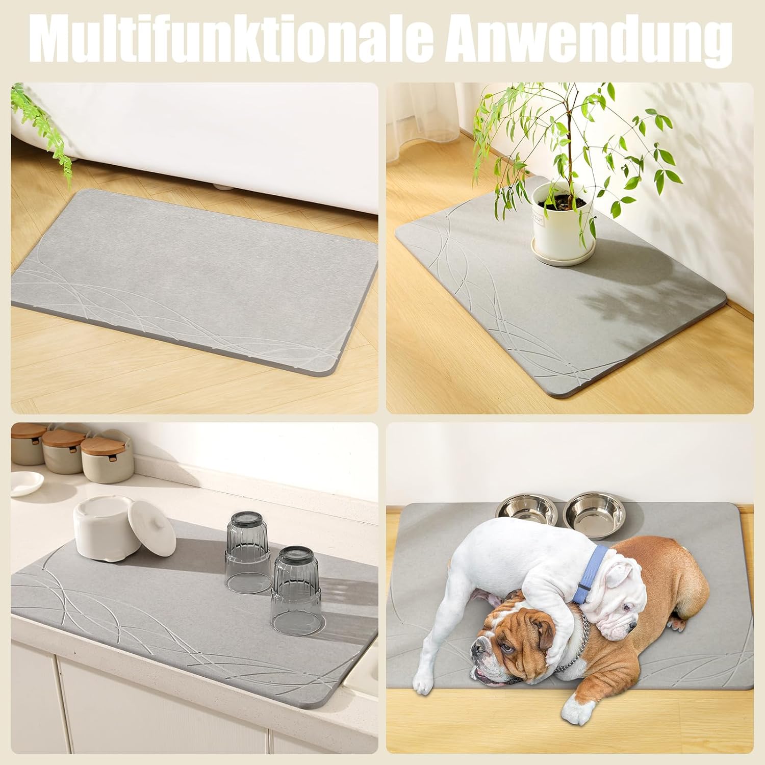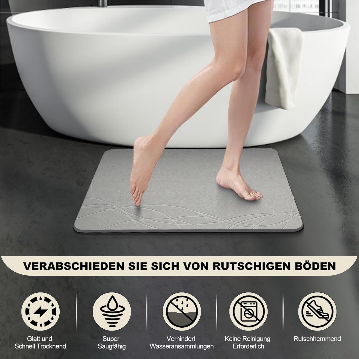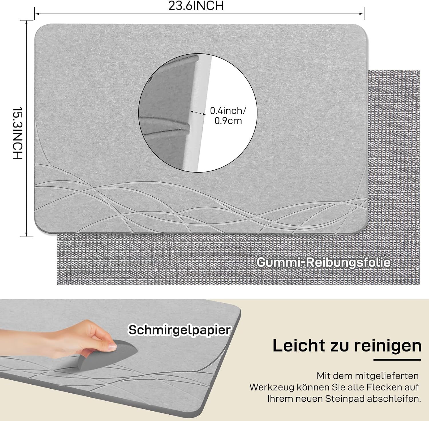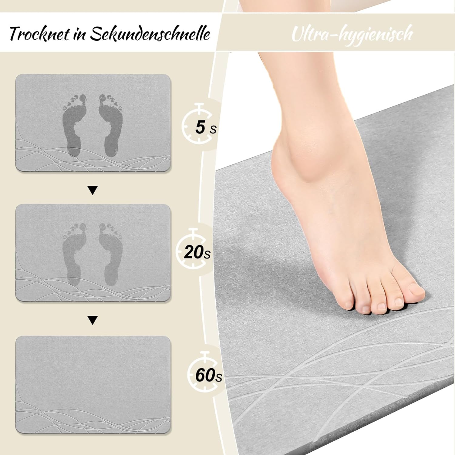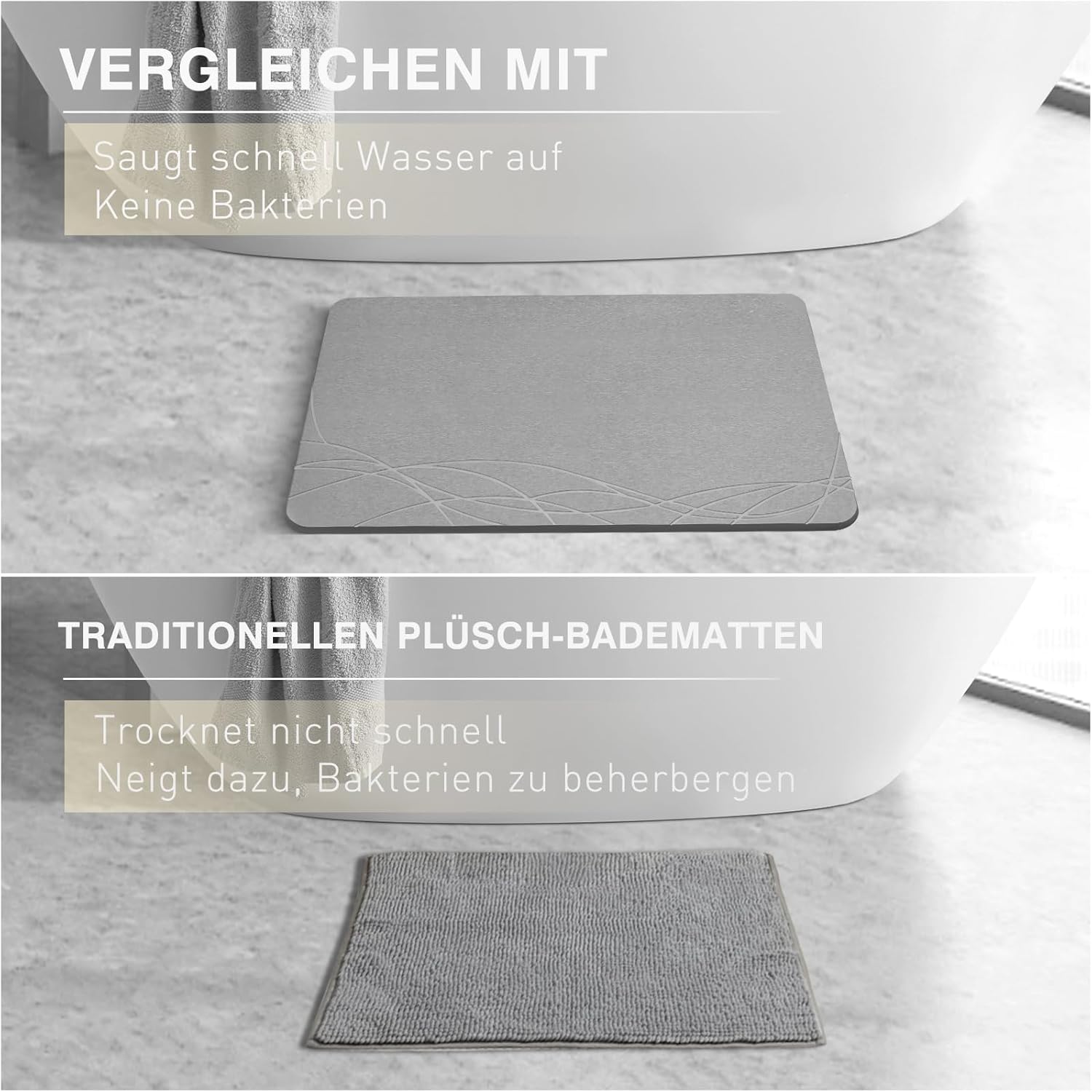 Изработени от издръжлива диатомитна пръст, нашите постелки за баня абсорбират влагата и съхнат бързо, за разлика от конвенционалните постелки за баня, които не го правят. Това поддържа работните повърхности в банята и кухнята, както и домакинските предмети чисти и подредени.