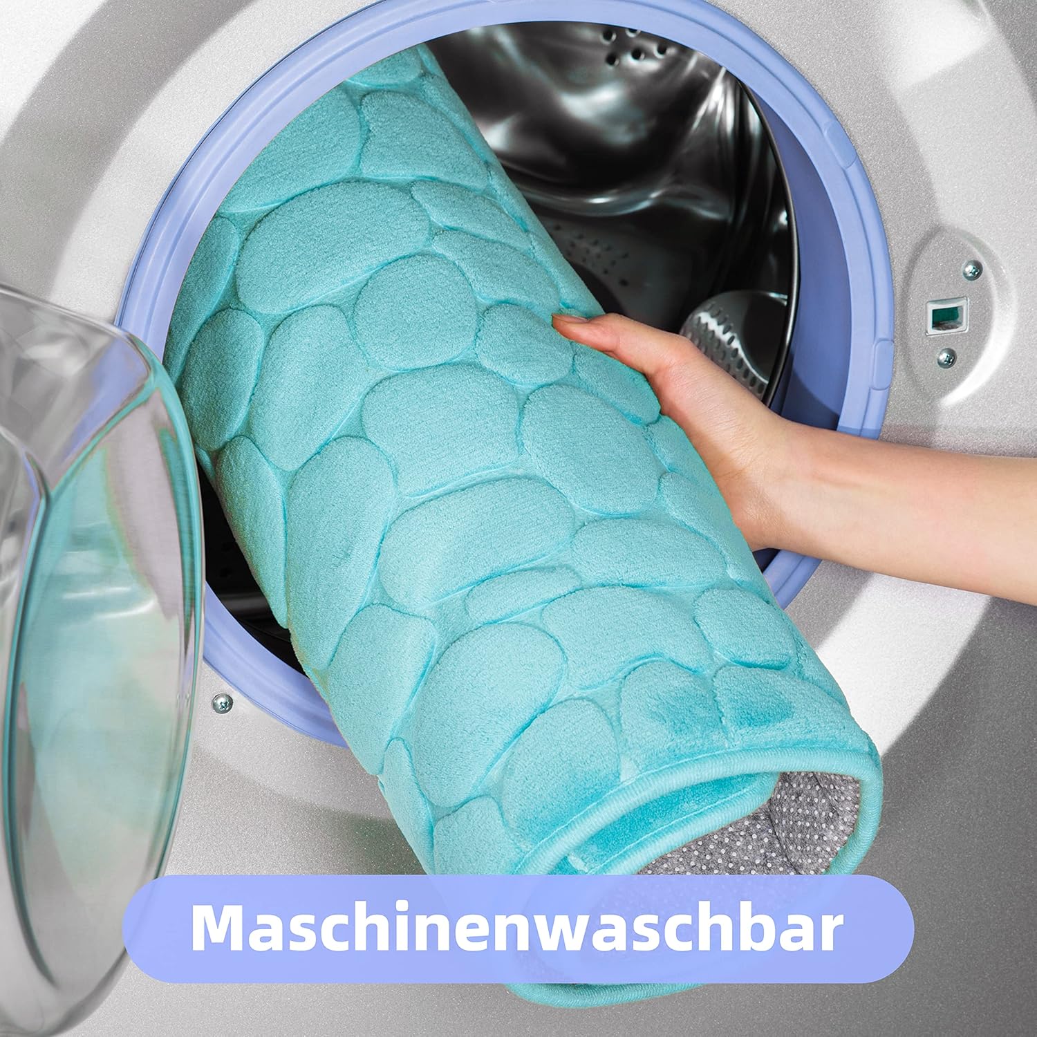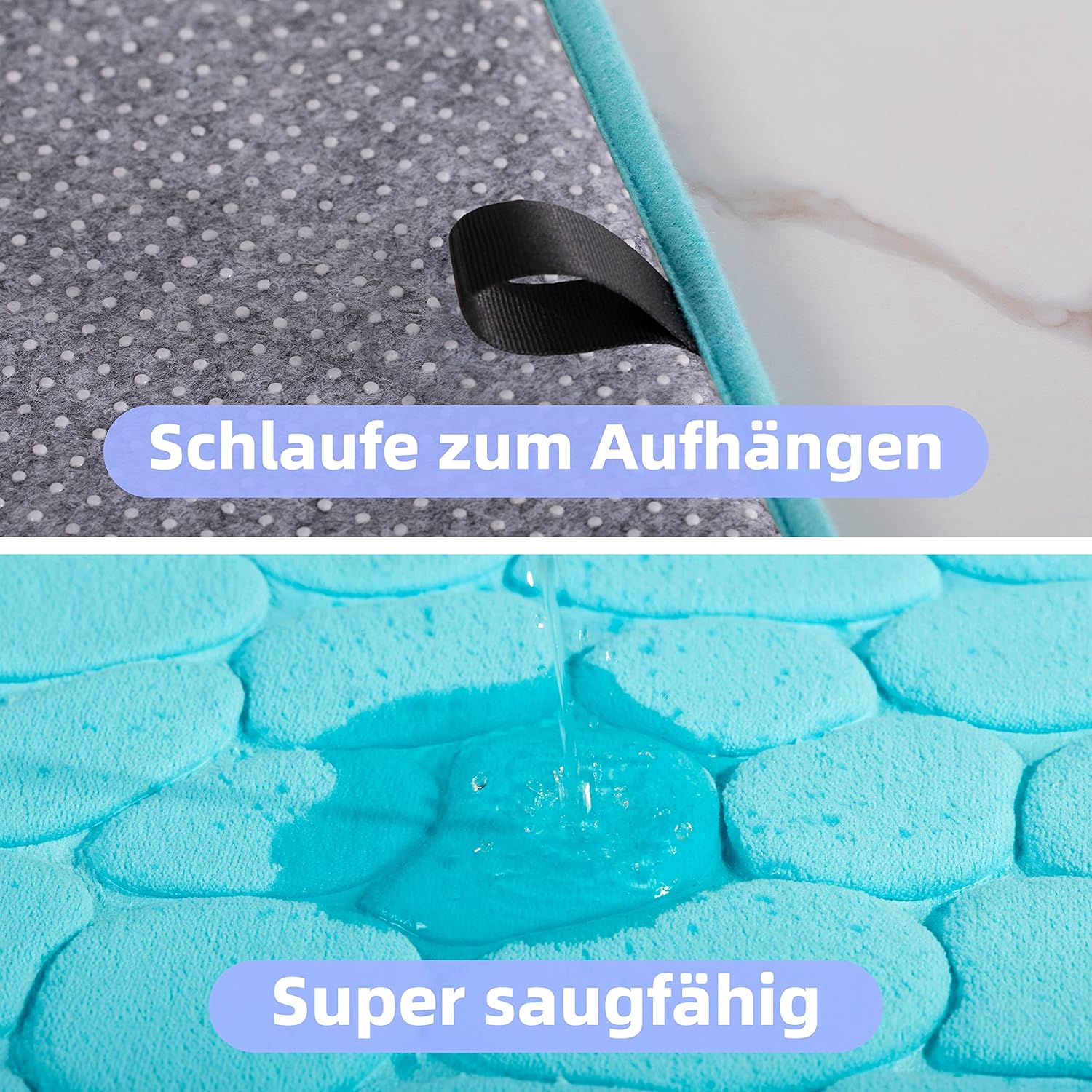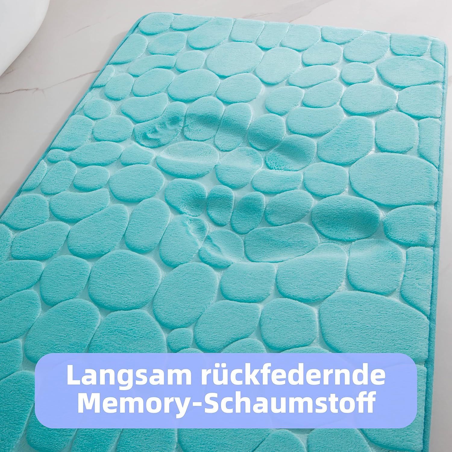 Постелка за баня от мемори пяна Chakme, абсорбираща постелка за баня, килим за баня, постелка за душ, декоративна изтривалка, неплъзгаща се постелка за баня, хол, 50 x 80 см, синьо-зелена