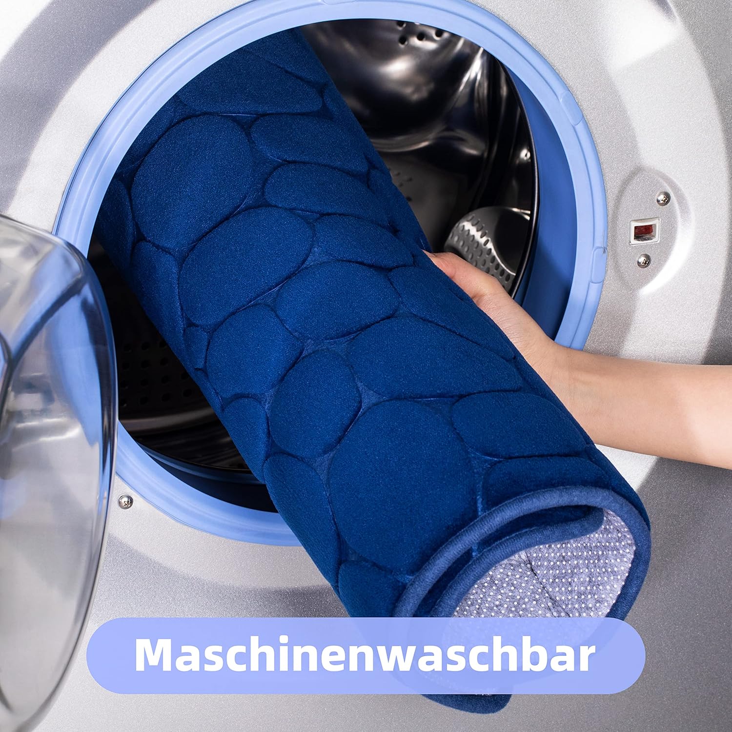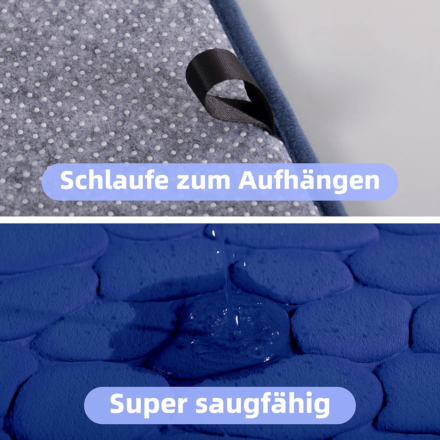 Постелка за баня от мемори пяна Chakme, абсорбираща постелка за баня, килим за баня, постелка за душ, декоративна изтривалка, неплъзгаща се постелка за баня, хол, 50 x 80 см, тъмносиня