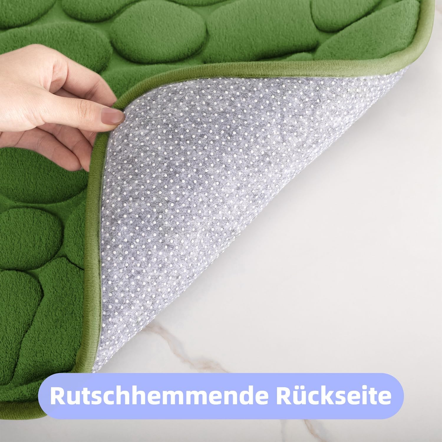• Безопасно и неплъзгащо се: гумената основа на постелката за баня ефективно предотвратява подхлъзване, а хиляди PVC противоплъзгащи точки ви предлагат двойна защита. Уверете се, че подът е сух и чист, в противен случай противоплъзгащият ефект може да бъде засегнат.