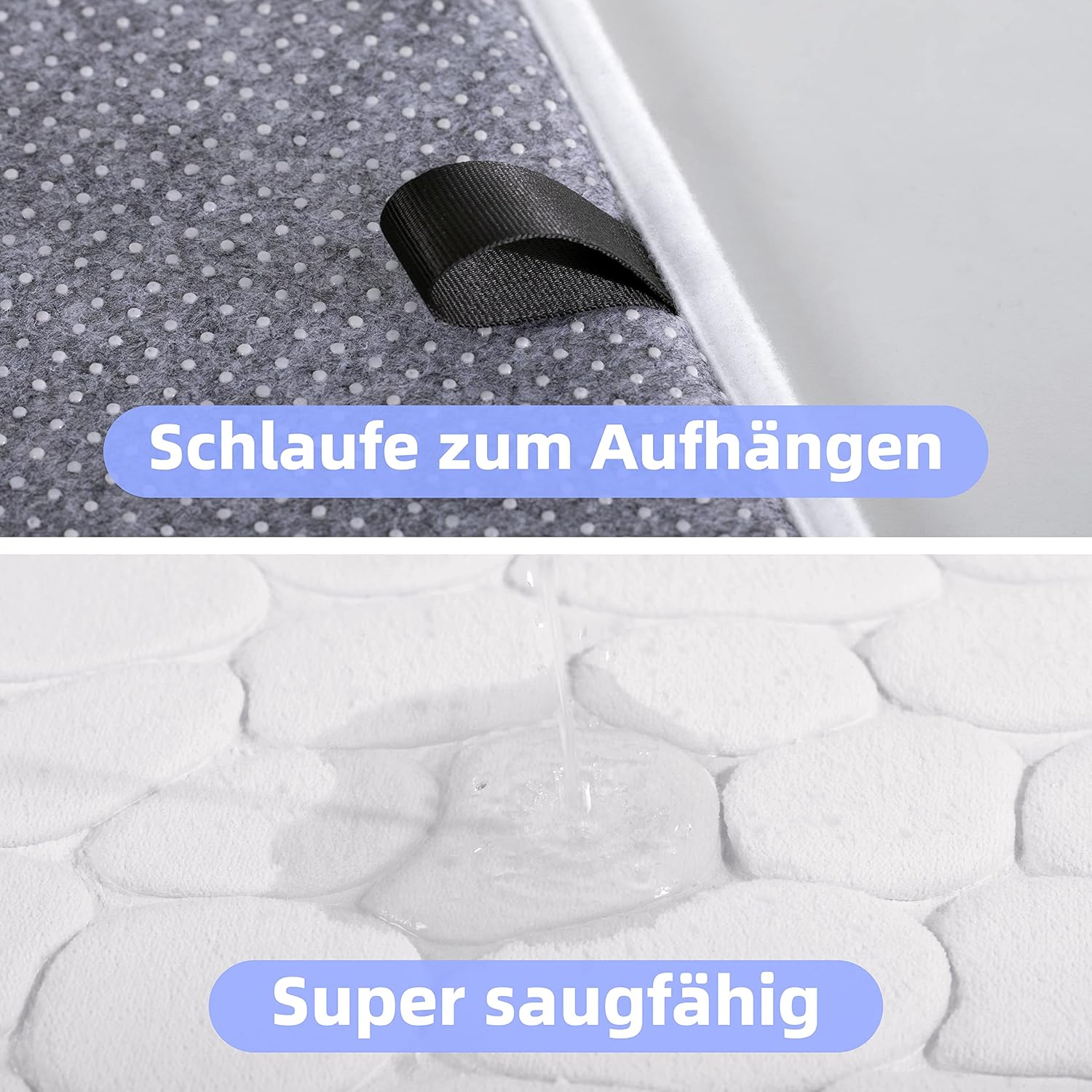 Постелка за баня от мемори пяна chakme, Постелка за душ от мемори пяна, Абсорбираща постелка за баня, Килим за баня, Постелка за душ, Декоративна постелка за врата, Неплъзгаща се постелка за баня, Хол, 50 x 80 см, Бяла