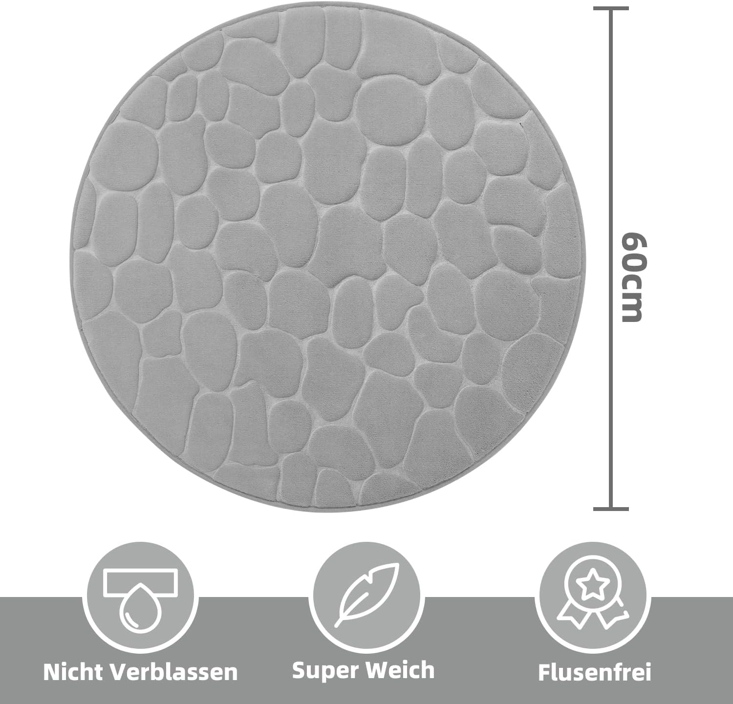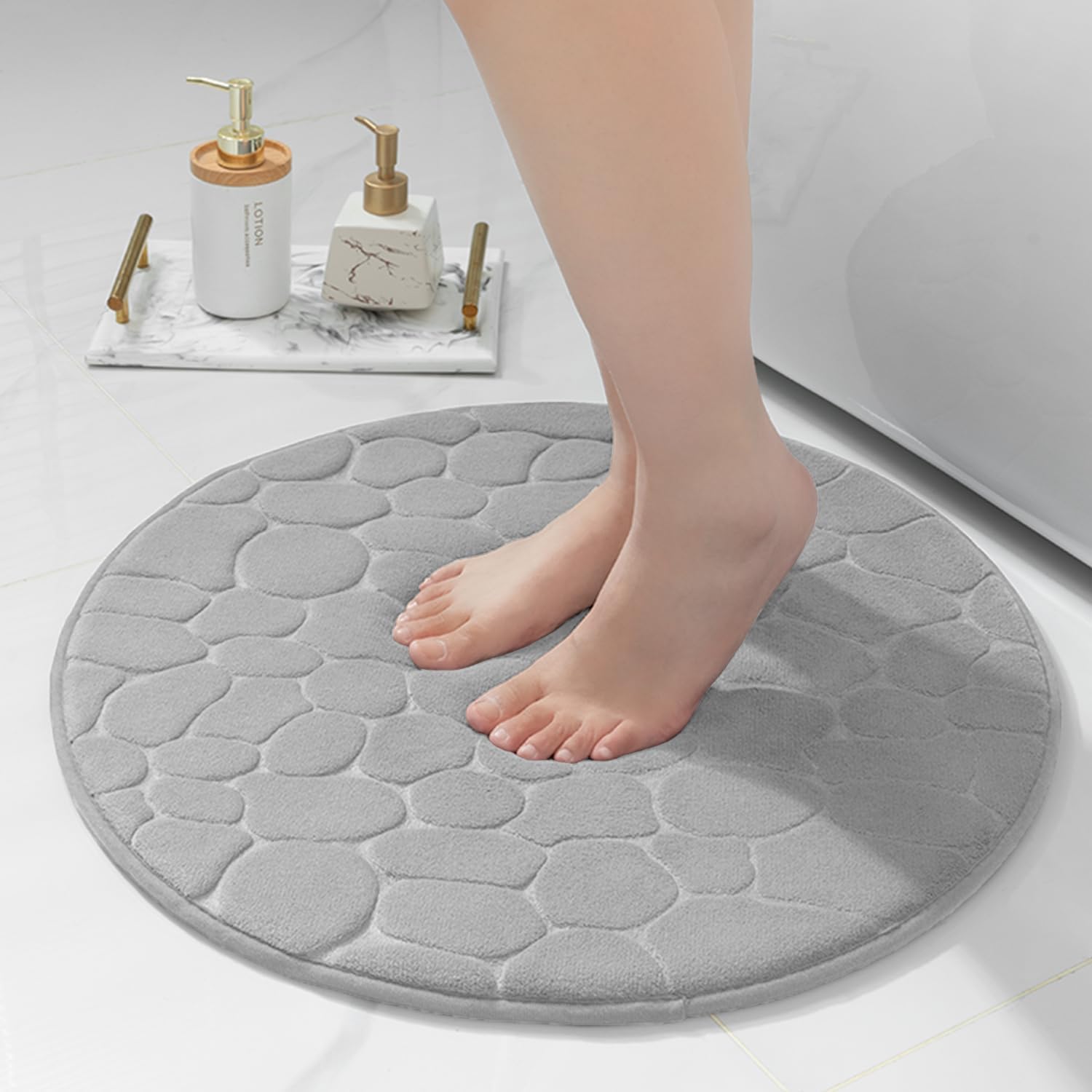 Постелка за баня от мемори пяна chakme, Постелка за душ от мемори пяна, Абсорбираща постелка за баня, Килим за баня, Постелка за душ, Декоративна постелка за врата, Неплъзгаща се постелка за баня, Хол, 60 x 60 см, Светло сиво