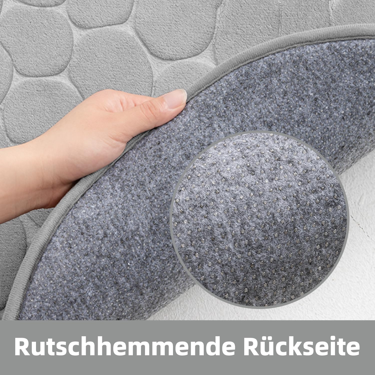 • Безопасно и неплъзгащо се: гумената основа на постелката за баня ефективно предотвратява подхлъзване, а хиляди PVC противоплъзгащи точки ви предлагат двойна защита. Уверете се, че подът е сух и чист, в противен случай противоплъзгащият ефект може да бъде засегнат.