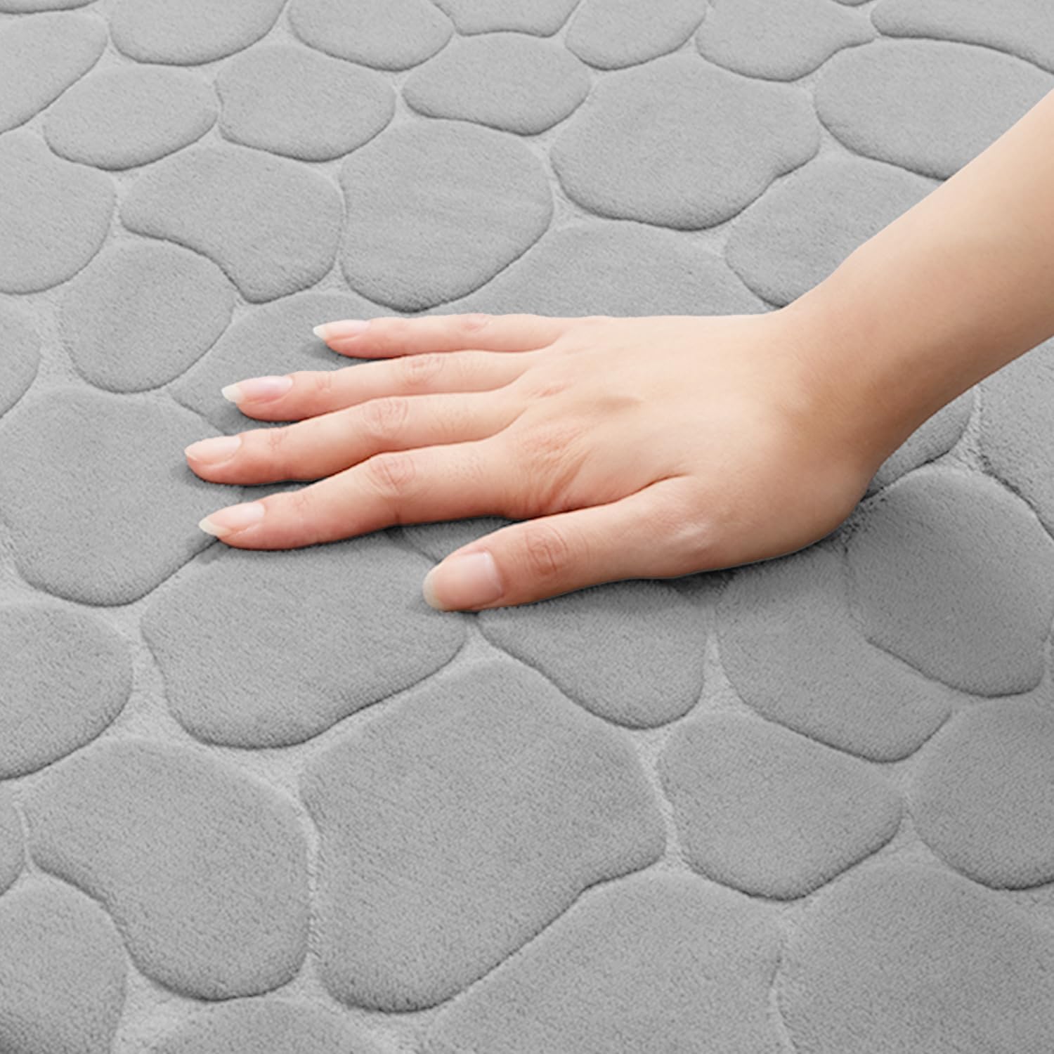 • УНИКАЛНО ИЗОБРАЖЕНИЕ Килимчето за баня има уникален вид на камъчета, който ви помага да се отпуснете и да се свържете с природата. Покрито е с мека коралова кадифена материя, която е нежна за кожата и дишаща и ви помага да се освободите от стреса от деня!