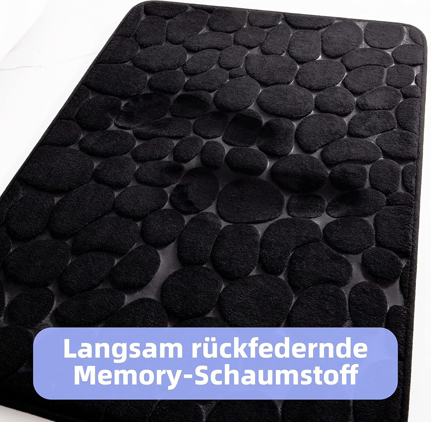 • КОМФОРТ ПРИ ВЛИЗАНЕ Нашата неплъзгаща се постелка за баня е пълна с мемори пяна. Когато стъпите върху нея, пяната ще се деформира и перфектно ще обгърне стъпалата ви. Мекото усещане е сравнимо с ходене по облаци. Гъбата бавно се сплесква и се връща в първоначалната си форма.