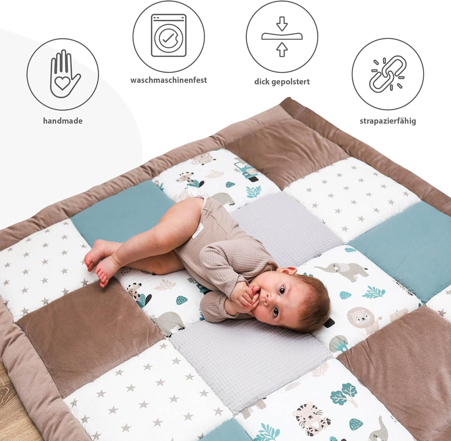 • 【ПЕРФЕКТЕН ПОДАРЪК】– Чудесна идея за подарък за раждане, кръщене или рожден ден, подходяща за момчета и момичета – бебешката подложка за игра е практична, стилна и задължителна в екипировката!