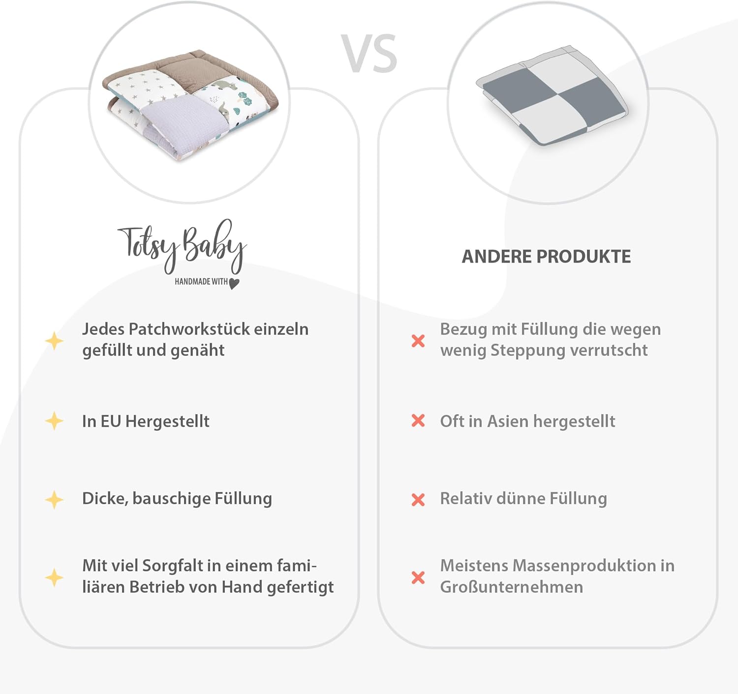 • ️【УДОБНА ПОДПЛАТКА】– Подплатата с дебелина приблизително 4 см на бебешката подложка за игра предпазва от студени и твърди подове и осигурява мека опора при първите опити за пълзене. Бебешката подложка за игра може да се пере в пералня до 30°C. Петната и замърсяванията могат лесно да се отстранят.