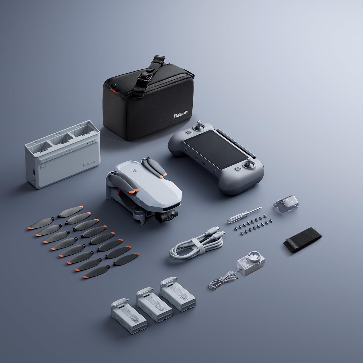 Potensic Atom 2 Fly More Combo с RC PTD 1, Дрон с камера 4K HDR видео, 8K снимки, под 249 грама, 3-осен гимбал, 10 км предаване, AI следване, вертикално снимане, AI нощни снимки, бързи снимки, клас C0