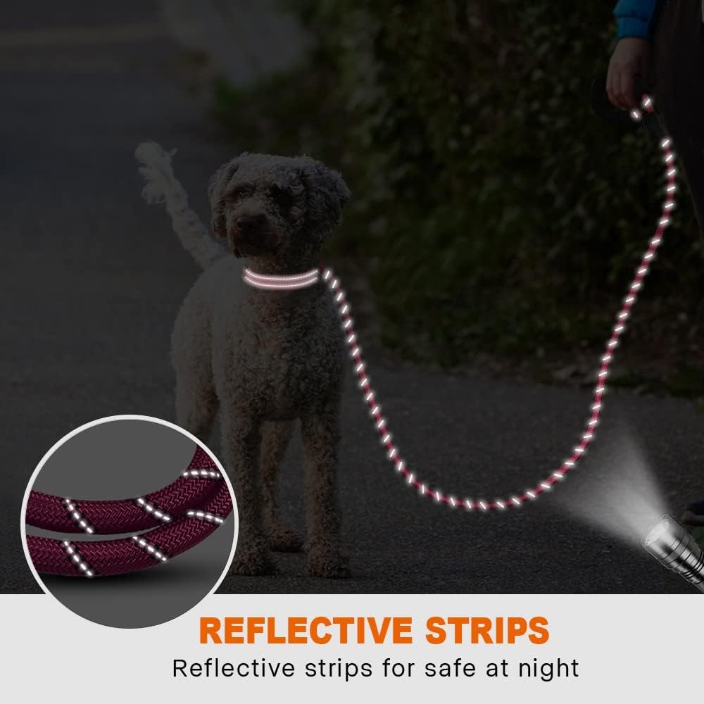 Повод за куче Taglory с удобна подплатена дръжка, здрав повод за обучение и разходка, 120 x 1.0 см, светлоотразителен повод от мек найлон за кучета със среден размер, ярко розов