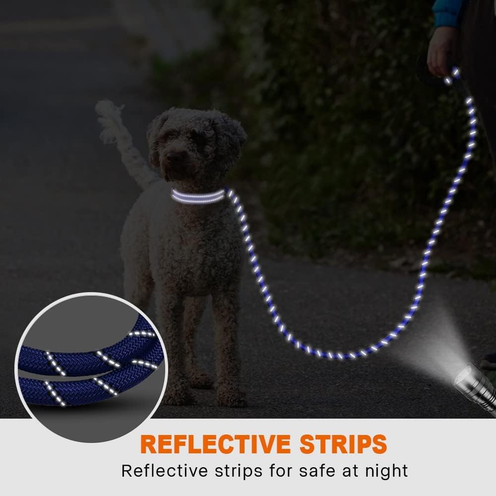 Повод за куче Taglory с удобна подплатена дръжка, здрав повод за обучение и разходка, 120 x 1.0 см, светлоотразителен повод от мек найлон за кучета със среден размер, тъмносин