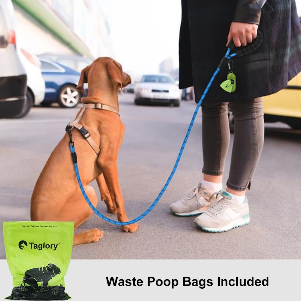Повод за куче Taglory с удобна подплатена дръжка, здрав повод за обучение и разходка, 150 x 1.0 см, светлоотразителен повод от мек найлон за кучета със среден размер, син